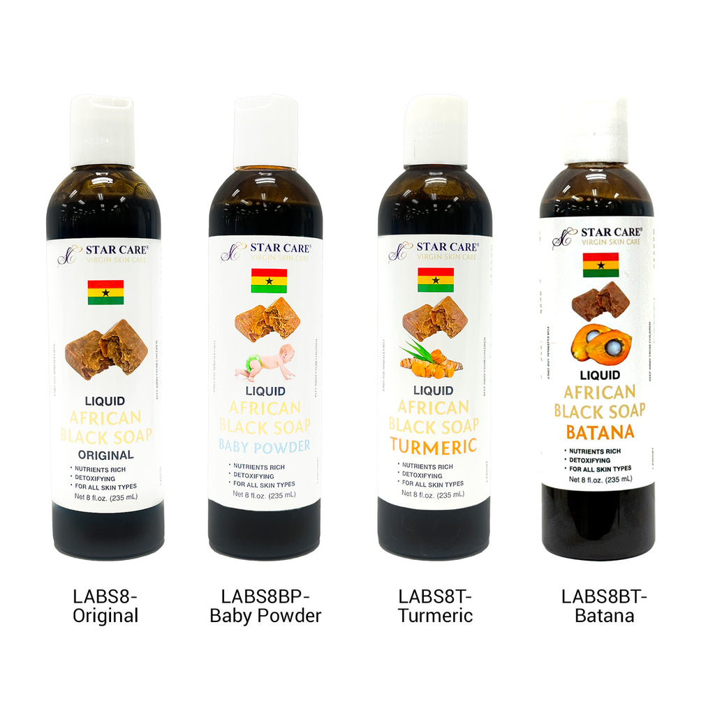 Star Care Virgin Liquid African Black Soap is a luxurious, nutrient-rich, and detoxifying skincare solution suitable for all skin types. Available in three delightful variants—Original, Baby Powder, and Turmeric—this liquid soap leverages the traditional benefits of African black soap to cleanse, nourish, and rejuvenate your skin.