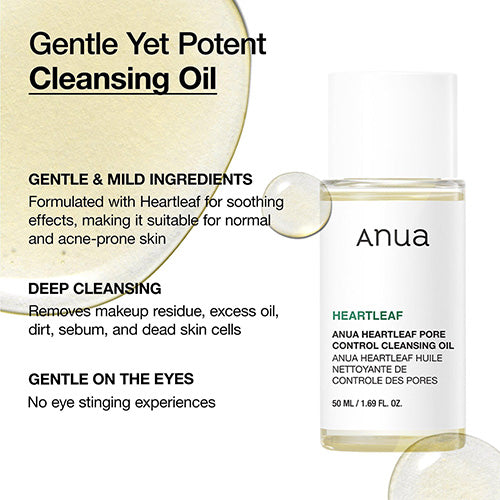 Gently melt away makeup, sunscreen, and impurities with the Anua Heartleaf Pore Control Cleansing Oil, a lightweight yet powerful cleansing oil designed to purify pores without stripping the skin. Infused with Heartleaf (Houttuynia Cordata) extract, known for its soothing and anti-inflammatory properties, this formula helps calm sensitive skin while controlling excess sebum.