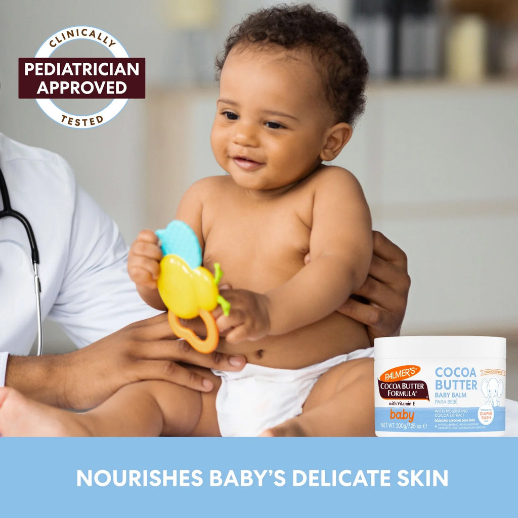 Palmer's Cocoa Butter Formula Baby Balm is a super concentrated moisture balm crafted with rich, natural Cocoa Butter to help heal, and soothe baby's sensitive skin. Moisturizes for 48 hours, ideal for dry, irritated skin. Suitable for diaper rash and eczema prone skin.