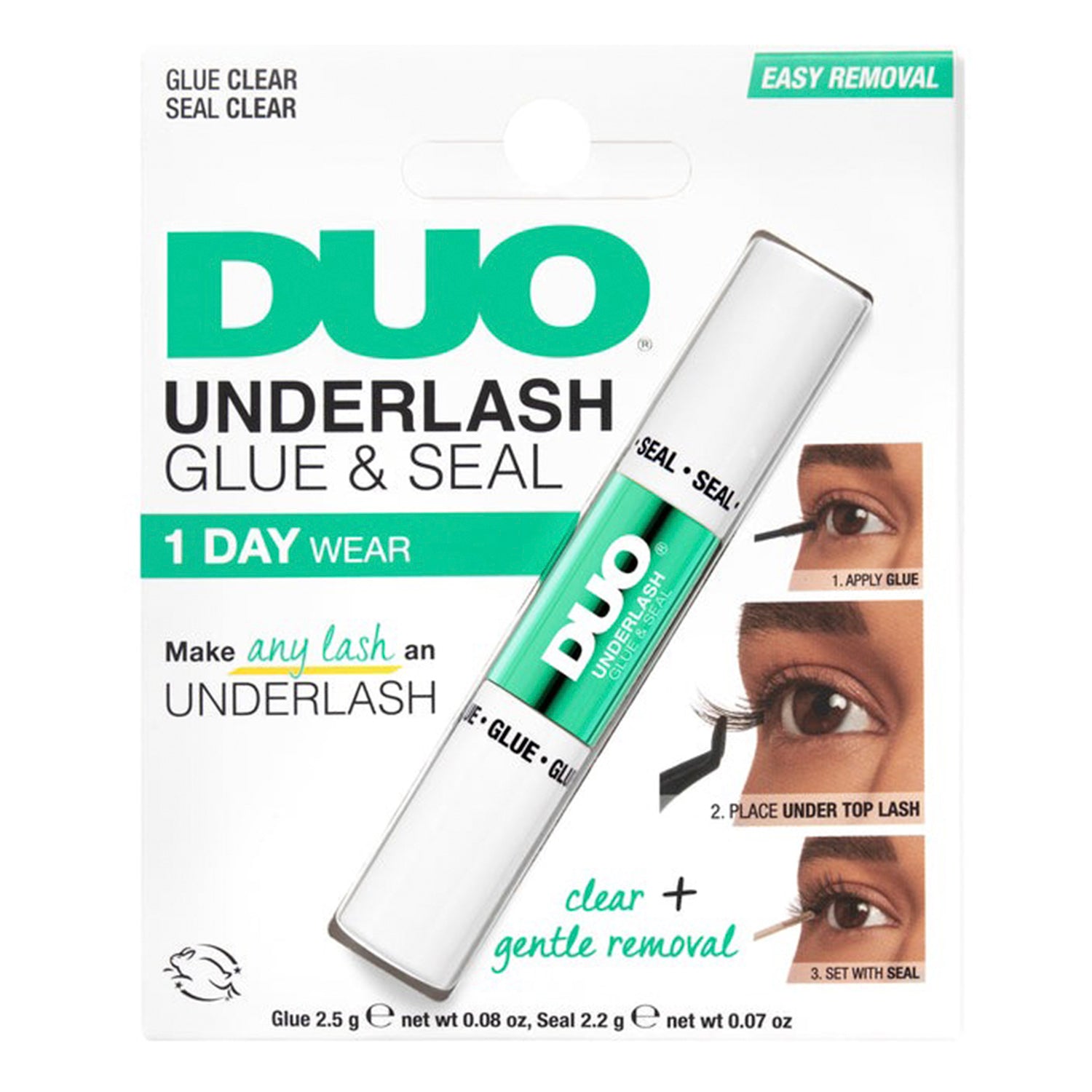 Love the natural, undetectable finish of underlashing? Now there’s a gentle 1-day glue that transforms any lash into an underlash! Universally-compatible, 1-day grip for clusters, individuals, trios & strips! Triple-enriched with lash-loving Vitamins A, C & E, and free of latex, Duo Underlash Clear Glue & Seal, 1-Day Wear, delivers a strong hold that secures lashes in place all day yet it’s gentle, comfortable and non-irritating. The formula has the perfect consistency for no-mess application and easy removal. Easy-to-use mini-applicators glide on like mascara to apply the right amount of product at the base of natural lashes. 2-step tube features Clear Glue to hold lashes securely, and Clear Seal to remove tacky residue, set lashes in place and add a seal of protection. Clear invisible formula is perfect for clean girl makeups looks and beginners because it doesn’t call attention to mistakes.