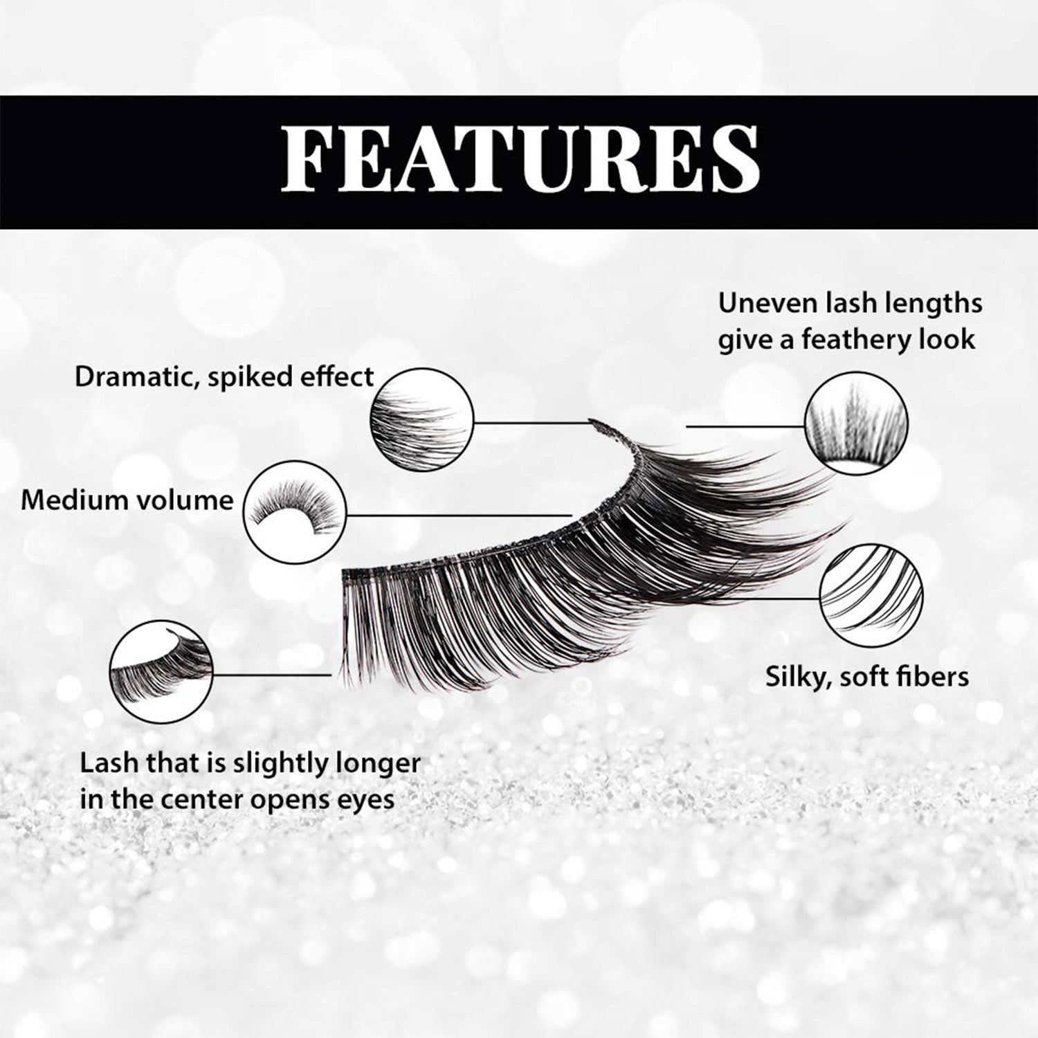 Get the full lash effect with the Fauxmink Luxuriously Lightweight with Invisiband lashes. These lashes are designed with silky soft fibers to give you a glamorous look. Delicately curled and layered to add a subtle dramatic effect.
