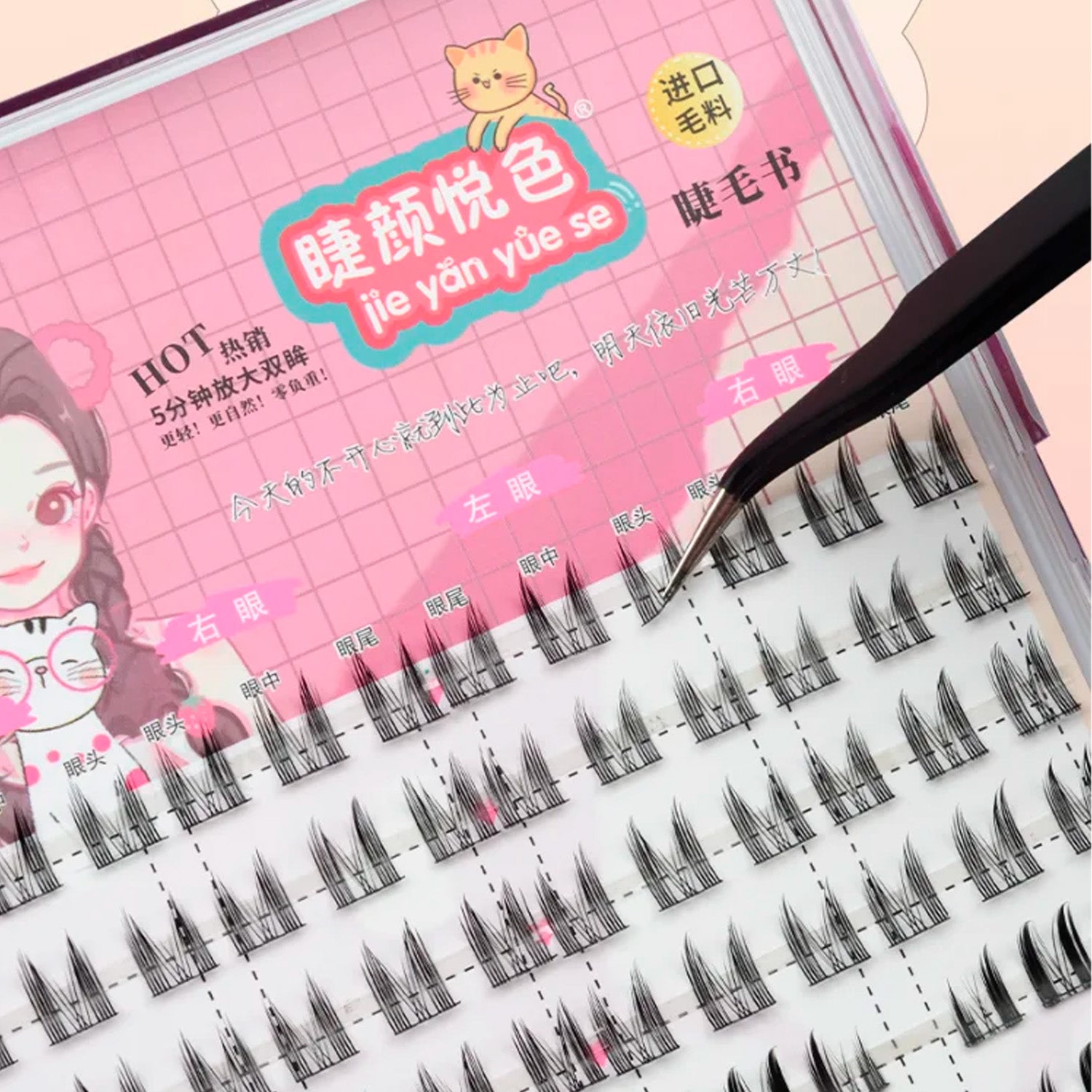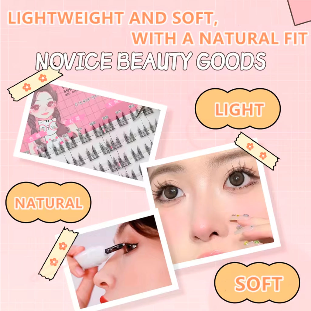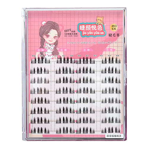 Crafted with high-quality synthetic fibers, each lash is soft, lightweight, and comfortable to wear. The cluster grafting design ensures easy application and long-lasting hold, while the variety of lengths in 8 neatly arranged rows allows for customized lash mapping to suit any eye shape.
