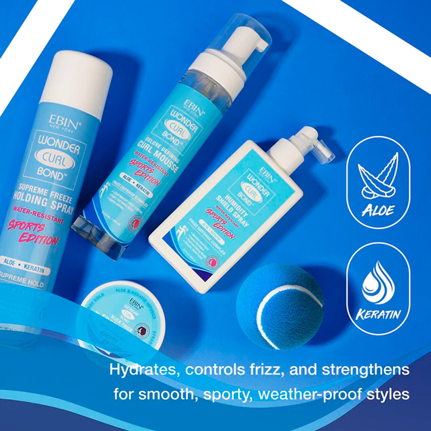 Defend your hair against the elements with Wonder Curl Bond Humidity Shield Spray Sports Edition—your go-to styling shield for long-lasting smoothness and frizz control. Specially formulated for active lifestyles and warmer climates, this lightweight spray creates an invisible barrier that blocks out humidity and environmental moisture while keeping hair sleek and manageable. Infused with aloe and keratin, it hydrates, strengthens, and smooths strands, boosting resilience and shine without weighing hair down.