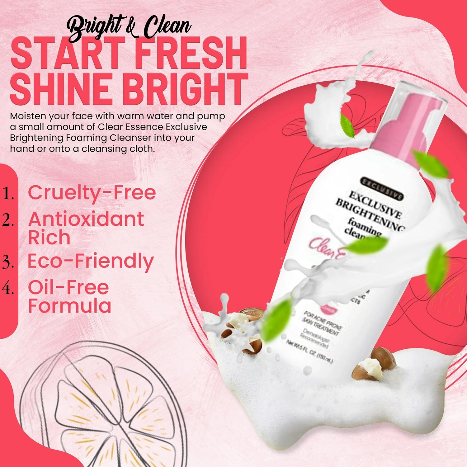 Clear Essence Exclusive Brightening Foaming Cleanser 5oz/ 150ml