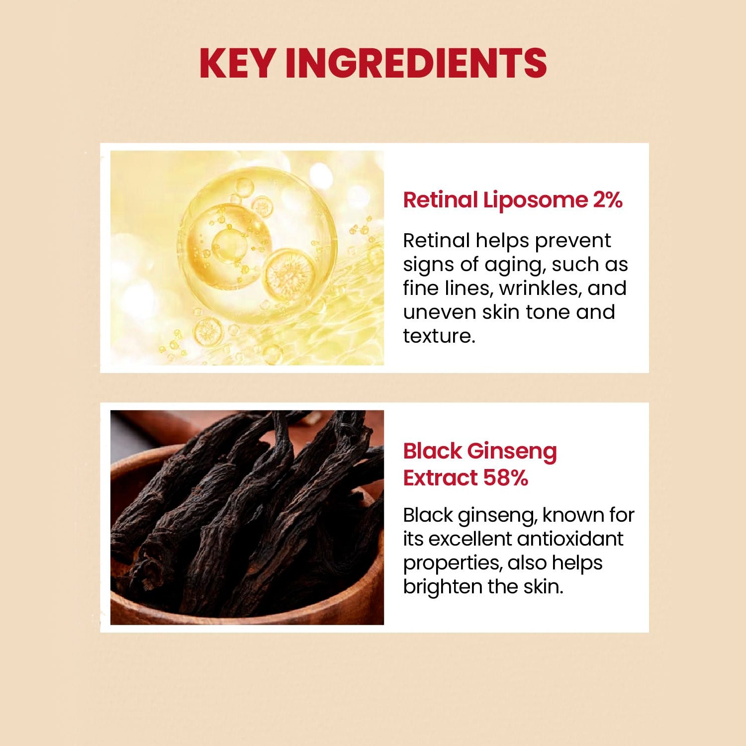 Enriched with Black Ginseng Extract, a rare and highly concentrated form of ginseng, the formula deeply nourishes the skin and enhances its resilience against environmental stressors. This unique combination works synergistically to rejuvenate dull, tired-looking skin and restore a youthful glow.