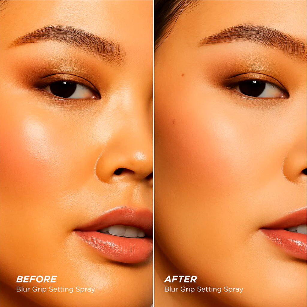 GLOW GRIP & BLUR GRIP SETTING SPRAY locks your makeup in place with a flawless finish that lasts all day.