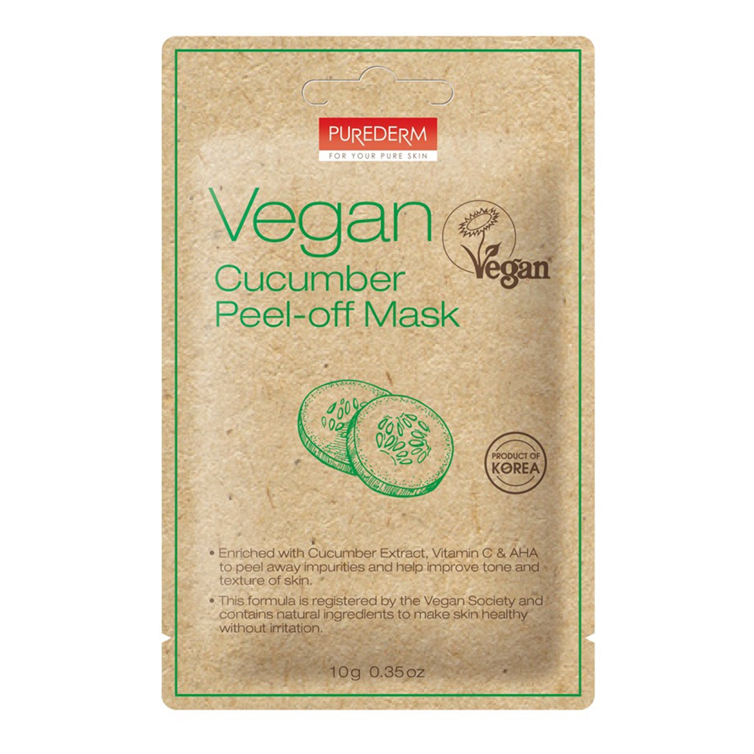 Purederm Vegan Cucumber Peel Off Mask 0.35oz/ 10g