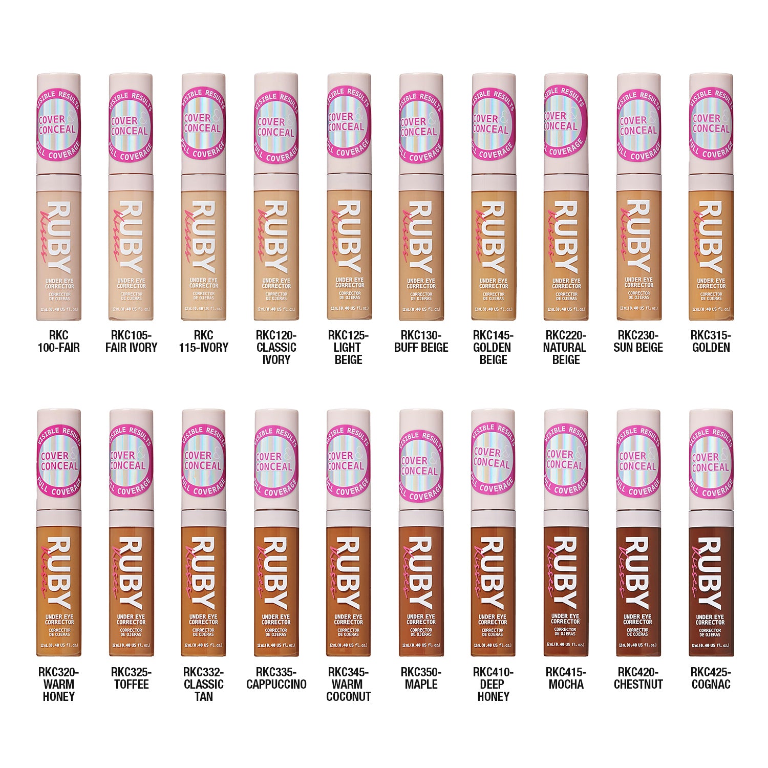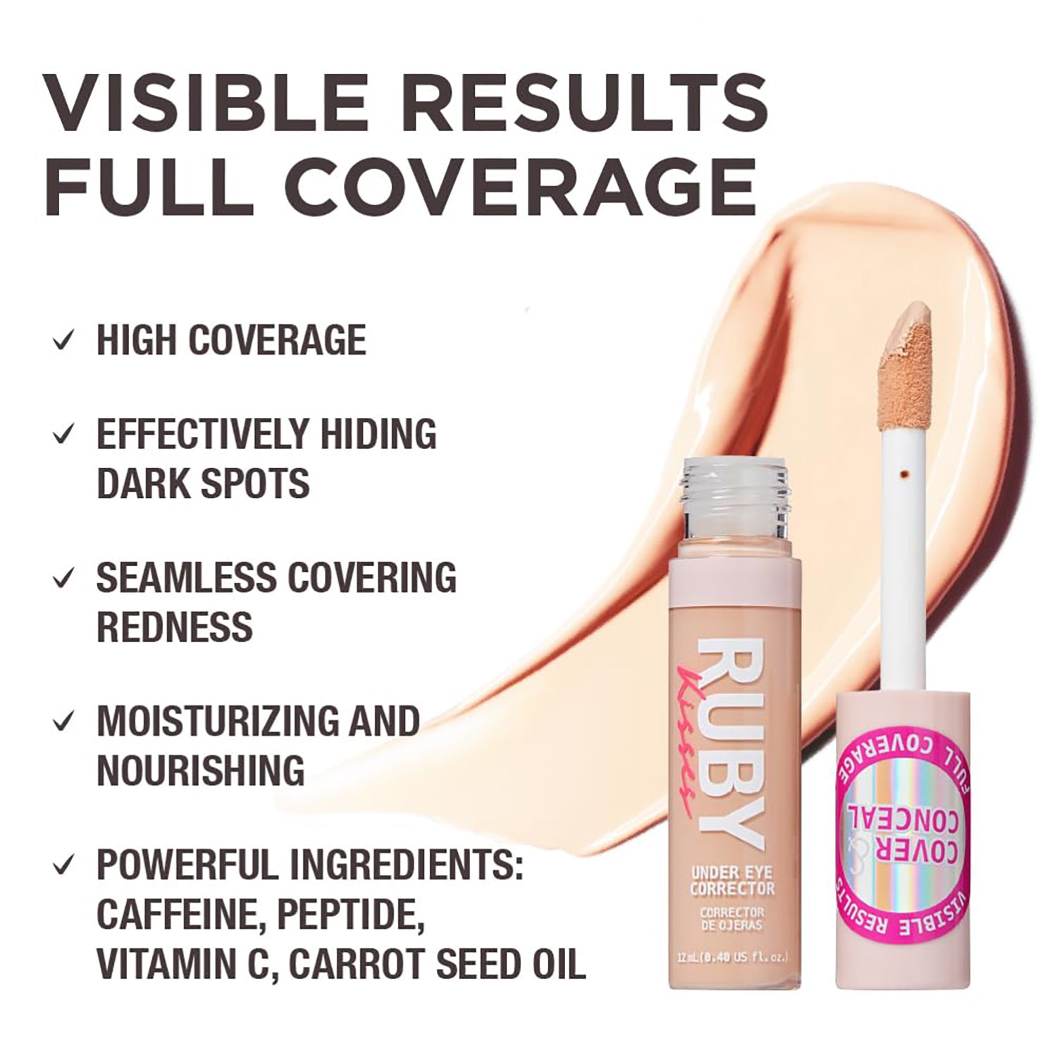 Brighten and conceal dark circles, redness, and blemishes with Ruby Kisses Under Eye Concealer. A hydrating, full coverage formula infused with Caffeine, Peptides, and Hyaluronic Acid for smooth, long-lasting, flawless skin.