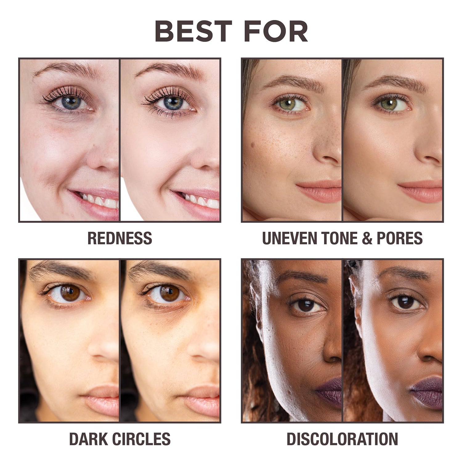 - Full Coverage & Long Lasting: Effectively conceals dark circles, redness, hyperpigmentation, and blemishes for a flawless, even complexion.