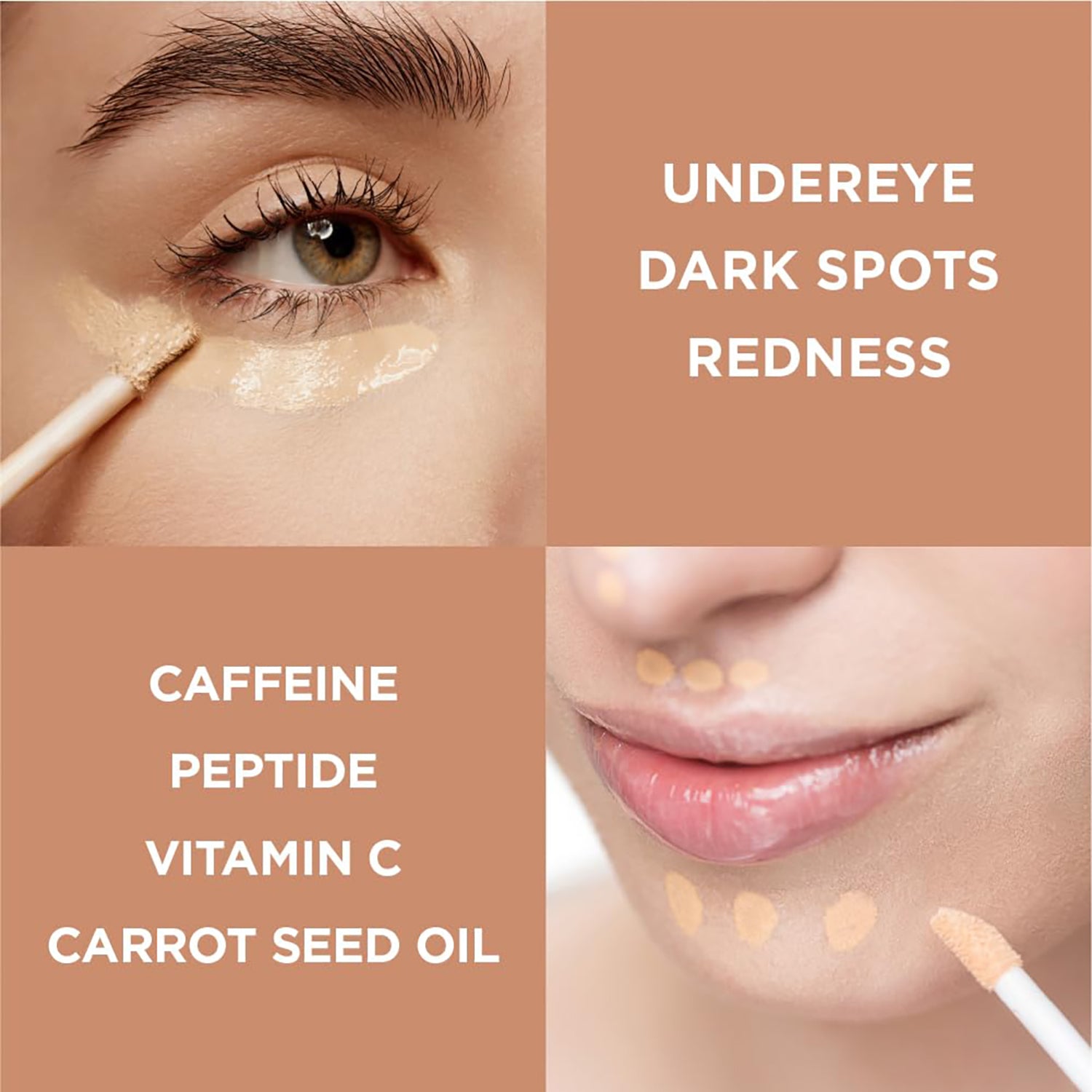 - Skincare-Infused Formula: Enriched with Caffeine, Peptides, and Vitamin C to brighten, firm, and depuff under-eye areas.