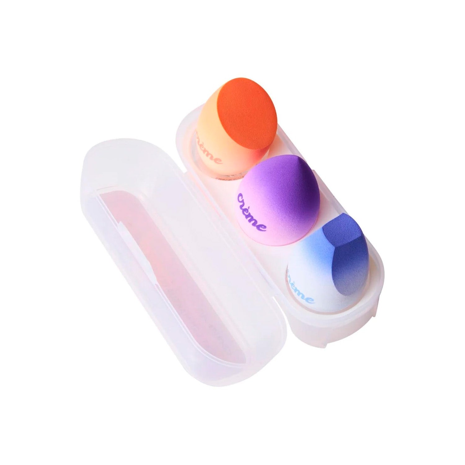 • This trio features three latex-free makeup sponges for flawless makeup application at home or on the go. The sanitary case allows you to store your beauty blender pack on your counter or in your cosmetic bag without worrying about damage or contamination to your blenders.