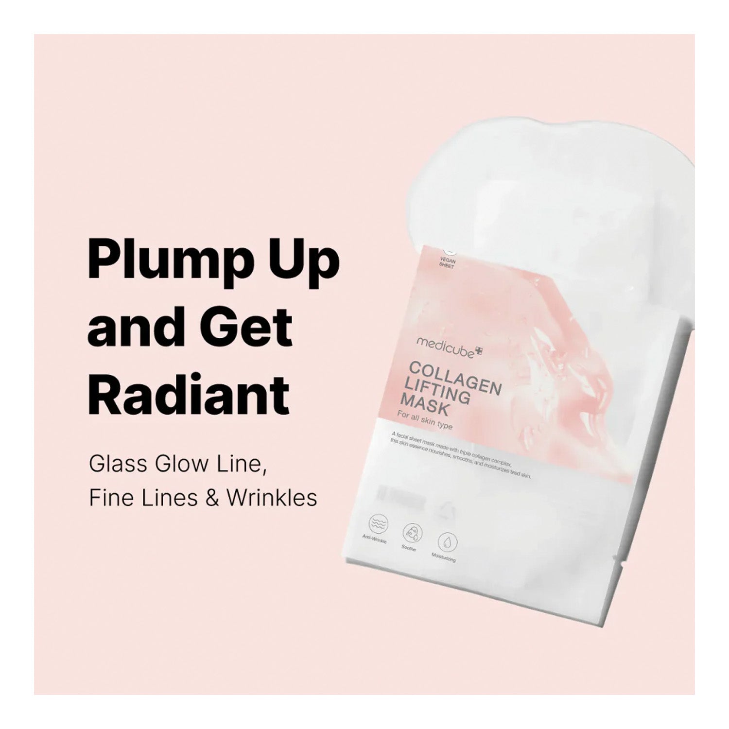 The Medicube Collagen Lifting Mask is a premium sheet mask designed to rejuvenate and firm the skin. Infused with a potent Triple Collagen Complex—comprising hydrolyzed collagen, soluble collagen, and atelo collagen—it deeply hydrates and enhances skin elasticity. This mask also contains allantoin and panthenol to soothe and regenerate the skin, while extracts from white mulberry bark and chickweed root help reduce pigmentation and protect against UV-induced damage. Ideal for all skin types, including sensitive skin, this mask delivers a revitalizing spa-like experience at home.
