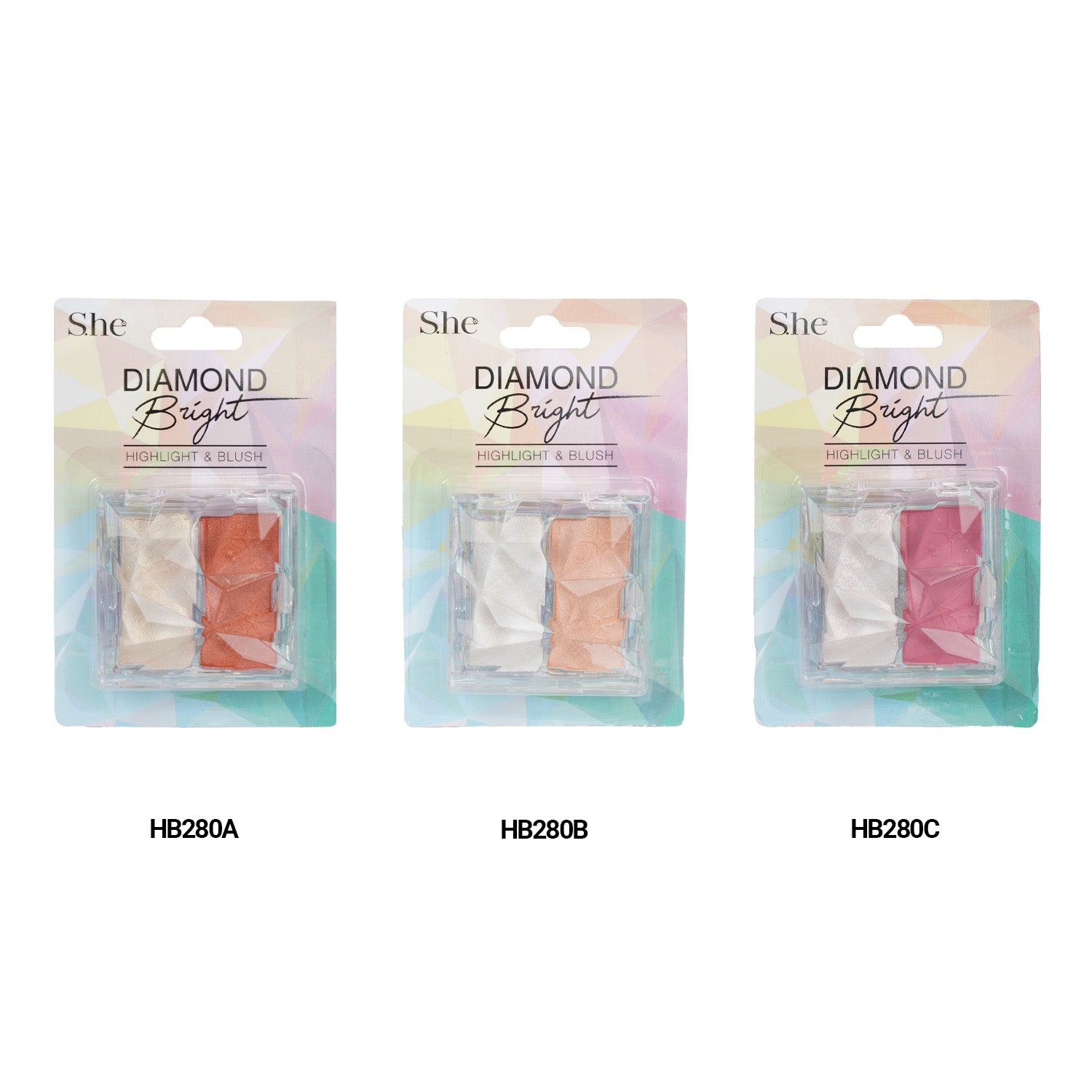 Glow like never before with the S.he Makeup Diamond Bright Highlight & Blush. This dual-purpose compact delivers a radiant, luminous finish that enhances your natural features. The finely milled powder blends effortlessly, offering buildable coverage for both subtle daytime elegance and bold evening glamour.