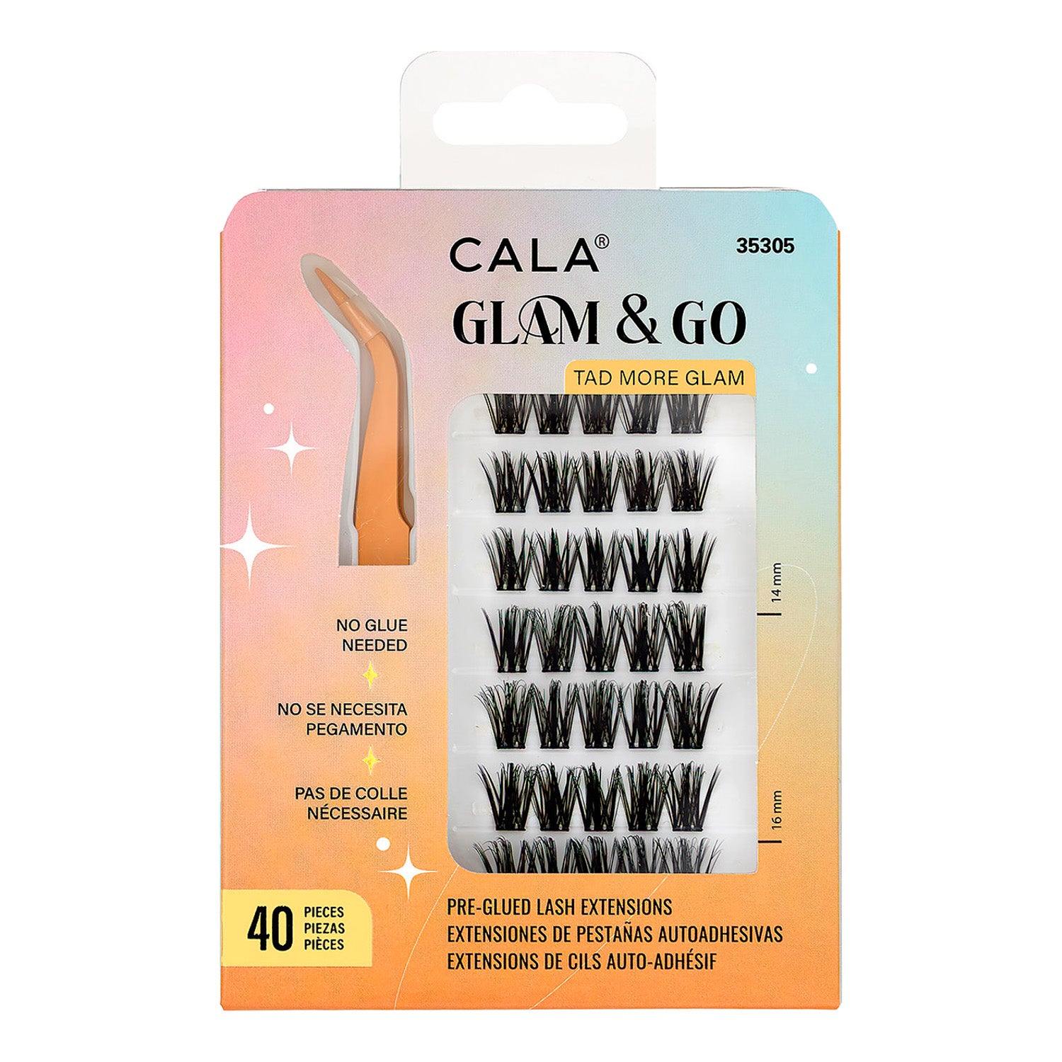 Skip the mess and get straight to the glam with CALA Glam & Go Tad More Glam Pre-Glued Lash Extensions. Designed for quick, fuss-free application, these lashes feature a pre-glued band—no glue, no wait time, just press and go! The mixed lengths (14mm & 16mm) create a soft, dimensional lash look that enhances your natural beauty with every blink.