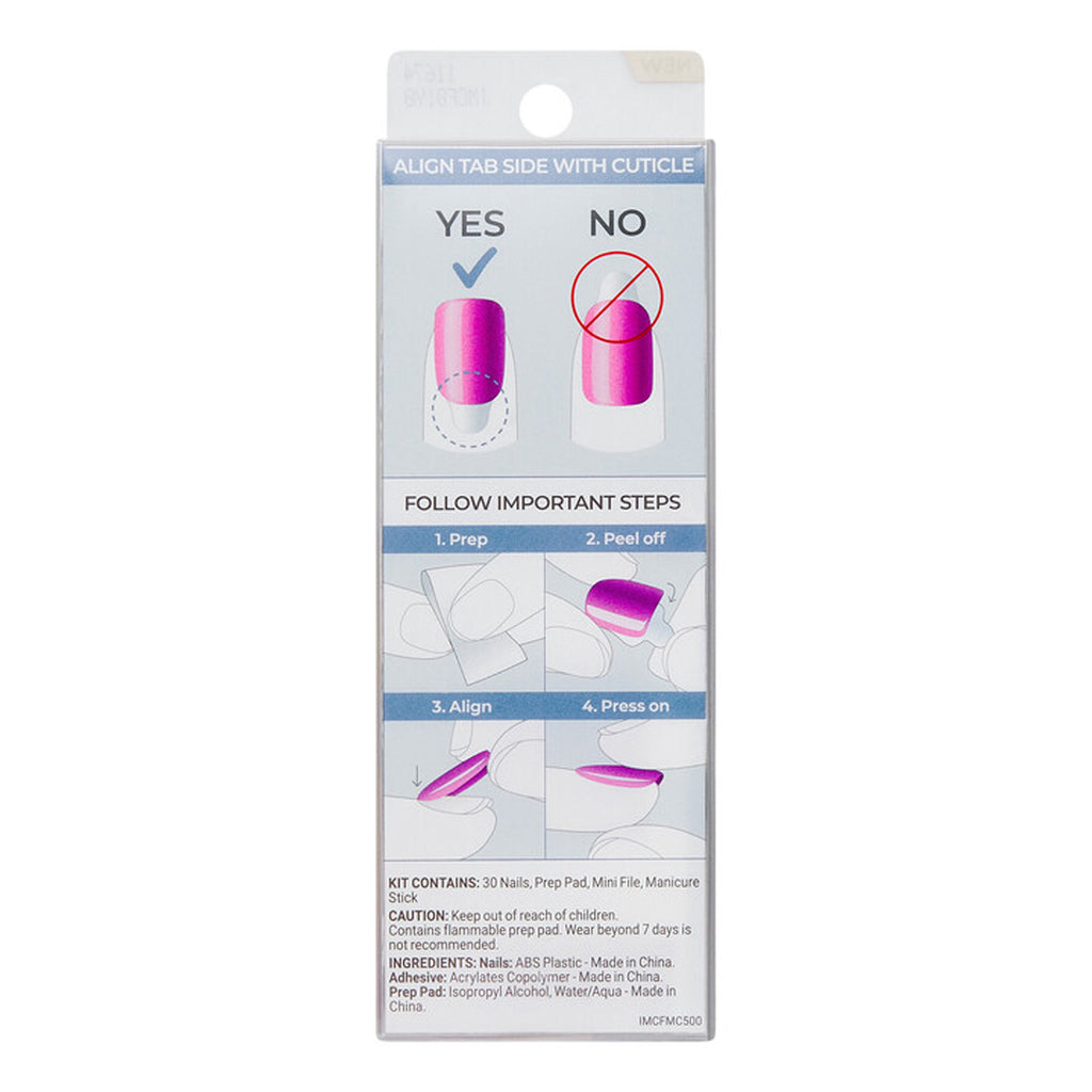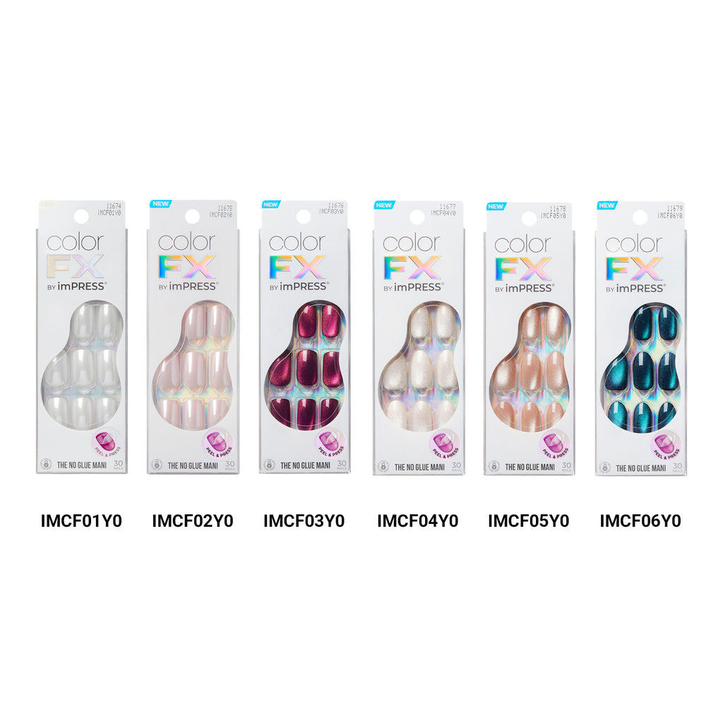 Get salon-quality nails in minutes with the Kiss imPRESS Color Fx 30 Nails. These press-on nails offer a flawless, vibrant color finish with an ultra-smooth surface and trendy design effects. The no-glue application makes it quick and easy to apply, while the patented PureFit Technology ensures a natural, comfortable fit. Perfect for at-home glam or last-minute events, these nails are chip-proof, smudge-proof, and stay put for up to a week.