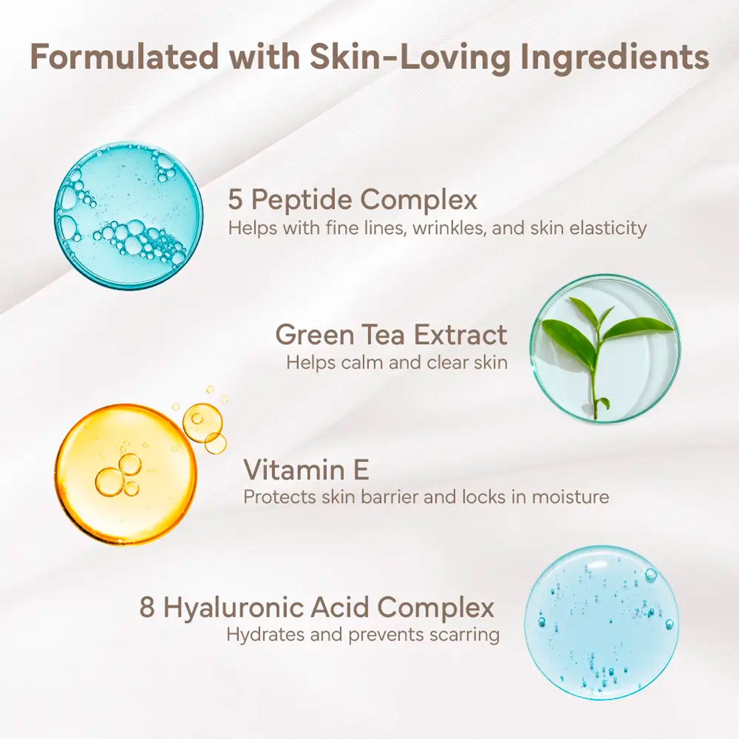 - Skin care ingredients: Enriched with 8 hyaluronic acid complex, vitamin E, peptides, and green tea extract for 12 hour all-day hydration and everyday natural makeup