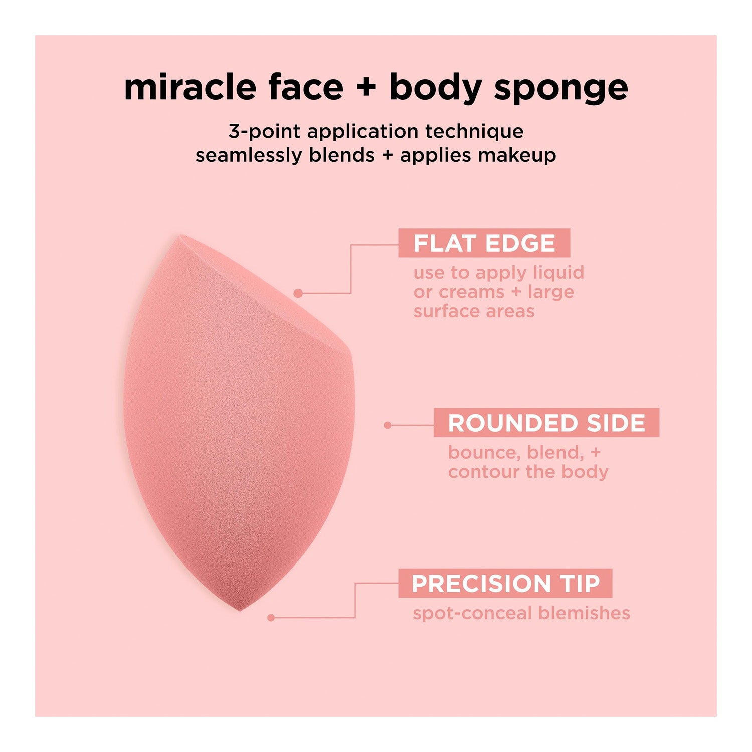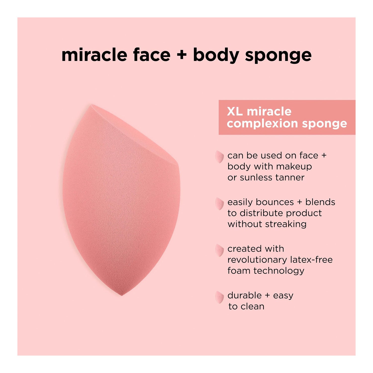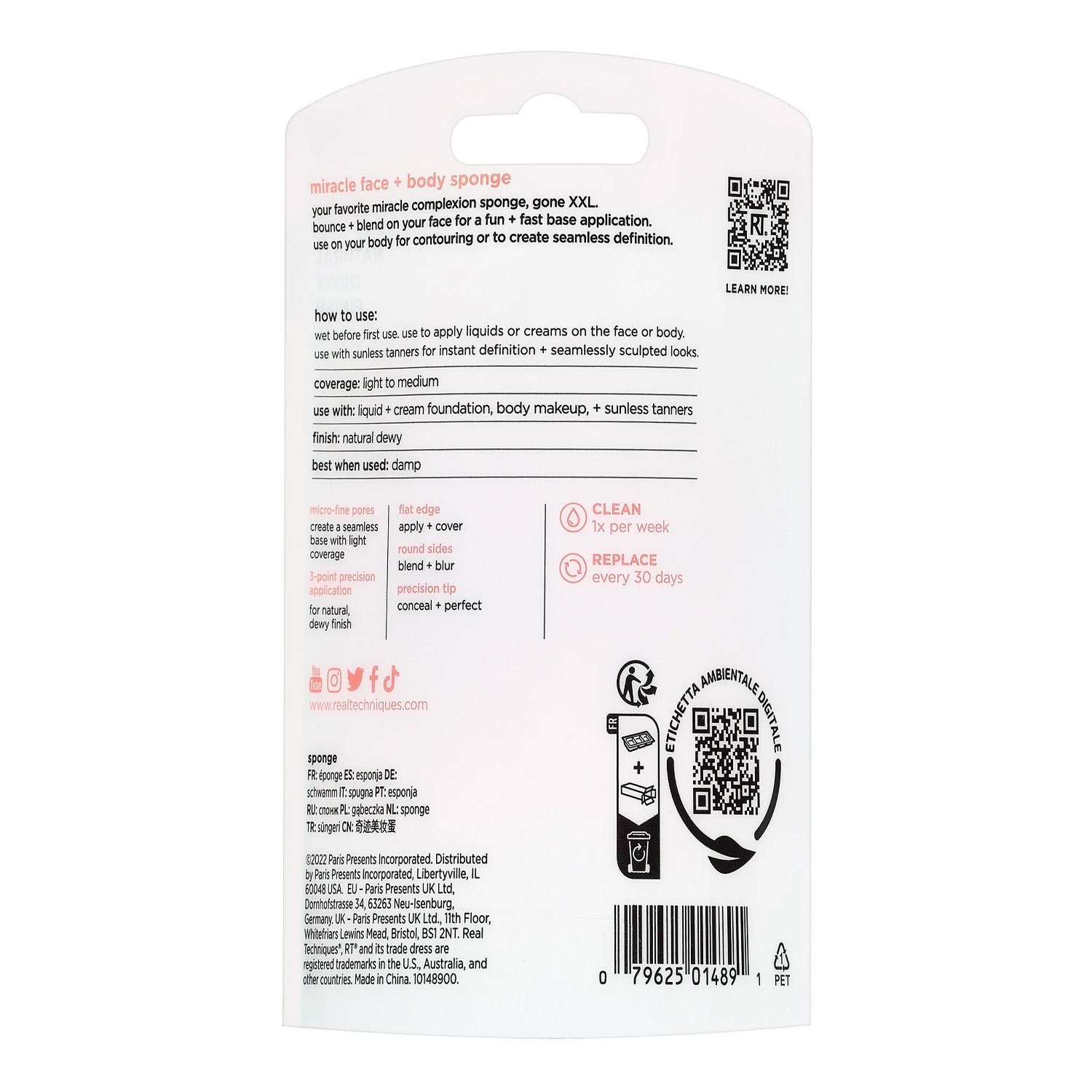 The Real Techniques Miracle Face & Body Sponge is a versatile, multi-functional beauty tool designed to deliver even and streak-free coverage for both face and body. Its large, soft, and flexible design allows for quick application of foundation, bronzer, or body makeup. Ideal for blending and smoothing, this sponge ensures a flawless, airbrushed finish every time. Whether you're prepping for a night out or enhancing your everyday glow, this sponge is your go-to for effortless application.