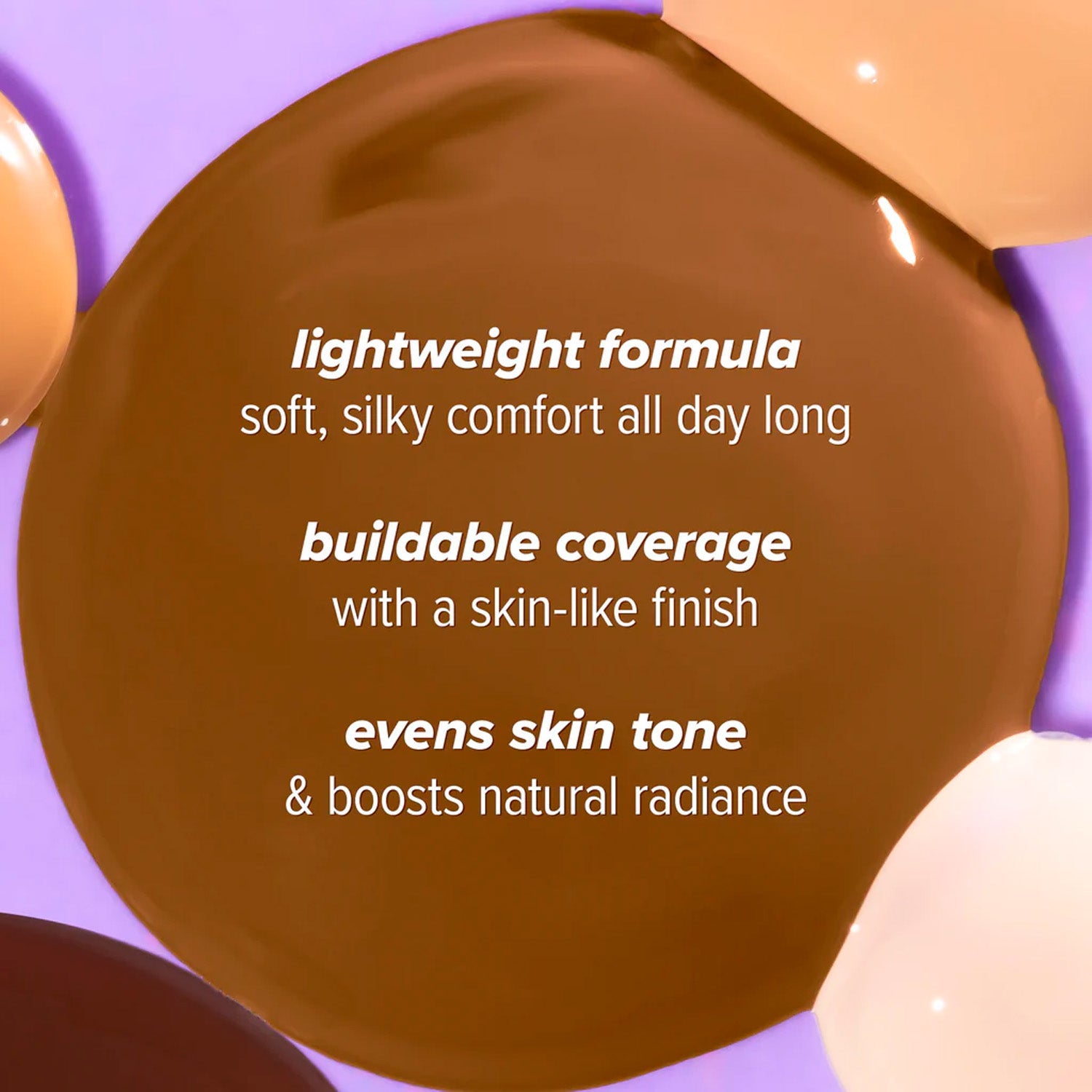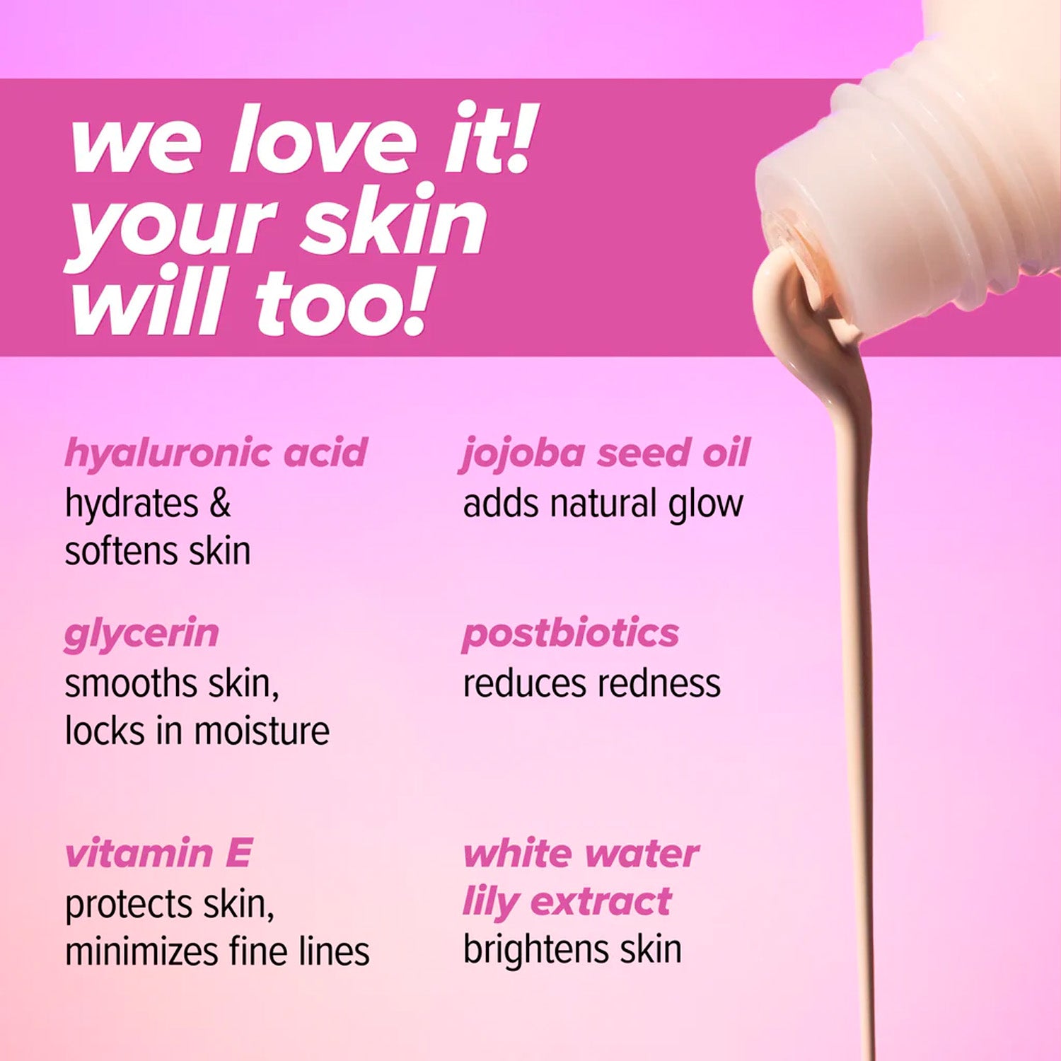 Infused with Hyaluronic Acid, Vitamin E, Glycerin, Jojoba Seed Oil and White Water Lily Extract, and postbiotics, it hydrates, soothes, and softens for a healthy-looking glow with all-day comfort. The sheer, buildable coverage blends effortlessly into all skin types, leaving a soft, radiant finish. Available in 16 inclusive shades from fair to rich.