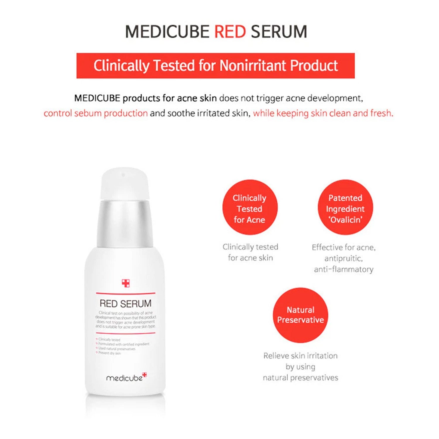 Red Serum contains patented 'ovalicin' to balance sebum production and treat severe acne. It targets the main cause of severe acne, which is excessive sebum, to improve skin and acne.