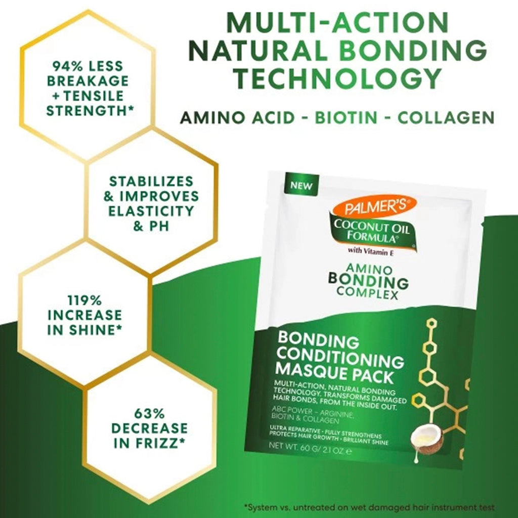 - Palmer’s® Coconut Oil Formula® AMINO BONDING COMPLEX is a proprietary natural bonding technology, uniquely formulated to restore and protect hair bonds that have been severely damaged by chemicals, styling and/or the environment.