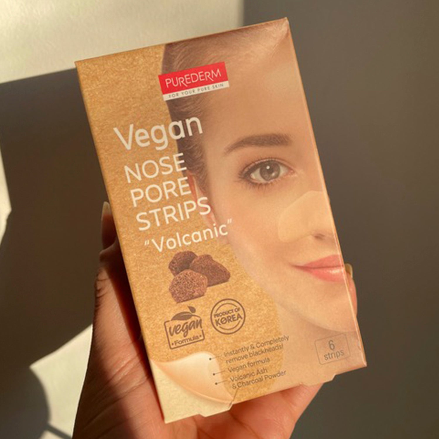 Purederm Vegan Nose Pore Strip "Volcanic" is an effective pore cleansing treatment that absorbs and lifts out deep-down blackheads, dirt and oil that trapped in pores, leaving your skin clear and smooth.