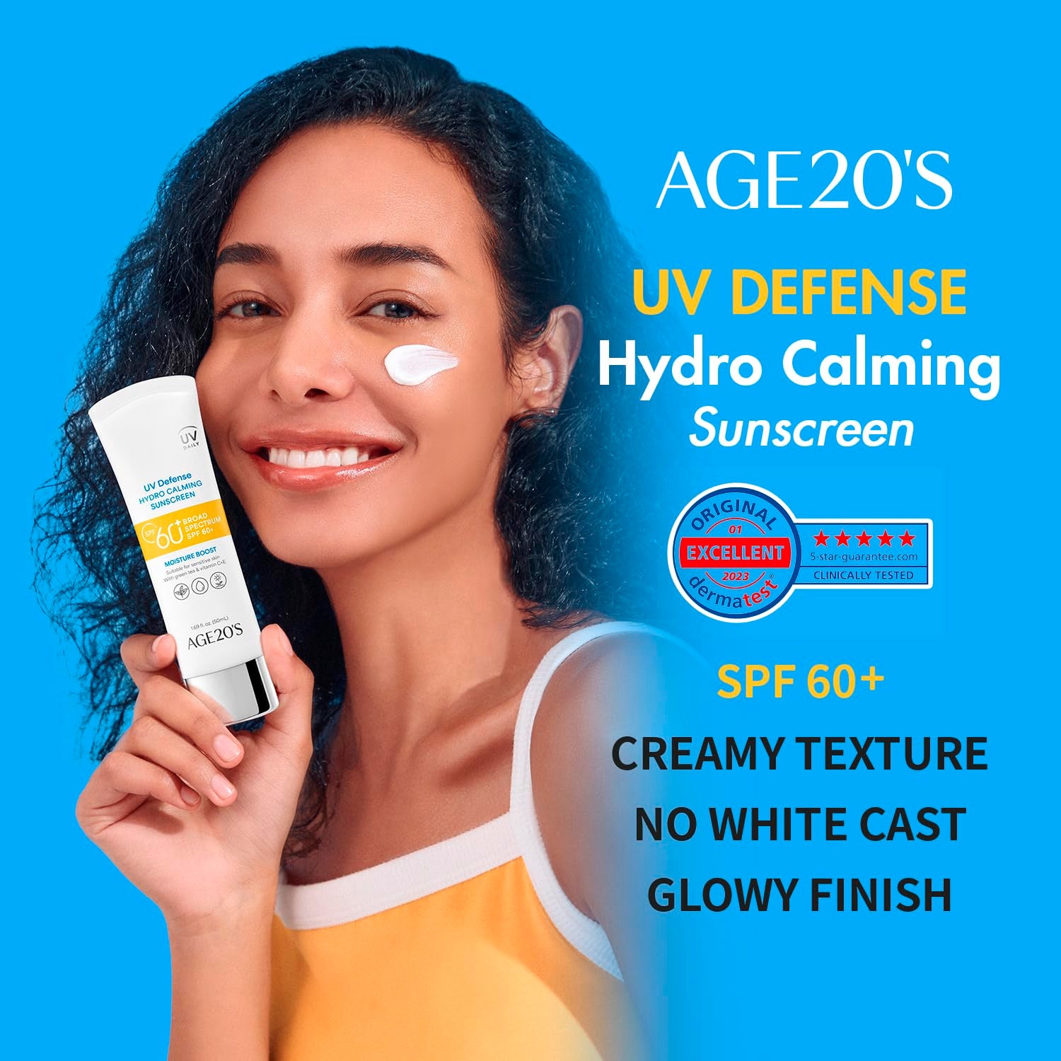 Protect and soothe your skin with Age20's UV Defense Hydro Calming Sunscreen, a lightweight yet powerful sun protector designed for daily use. Formulated with SPF 60+, this broad-spectrum sunscreen effectively shields your skin from harmful UVA and UVB rays, helping to prevent premature aging and sun damage.
