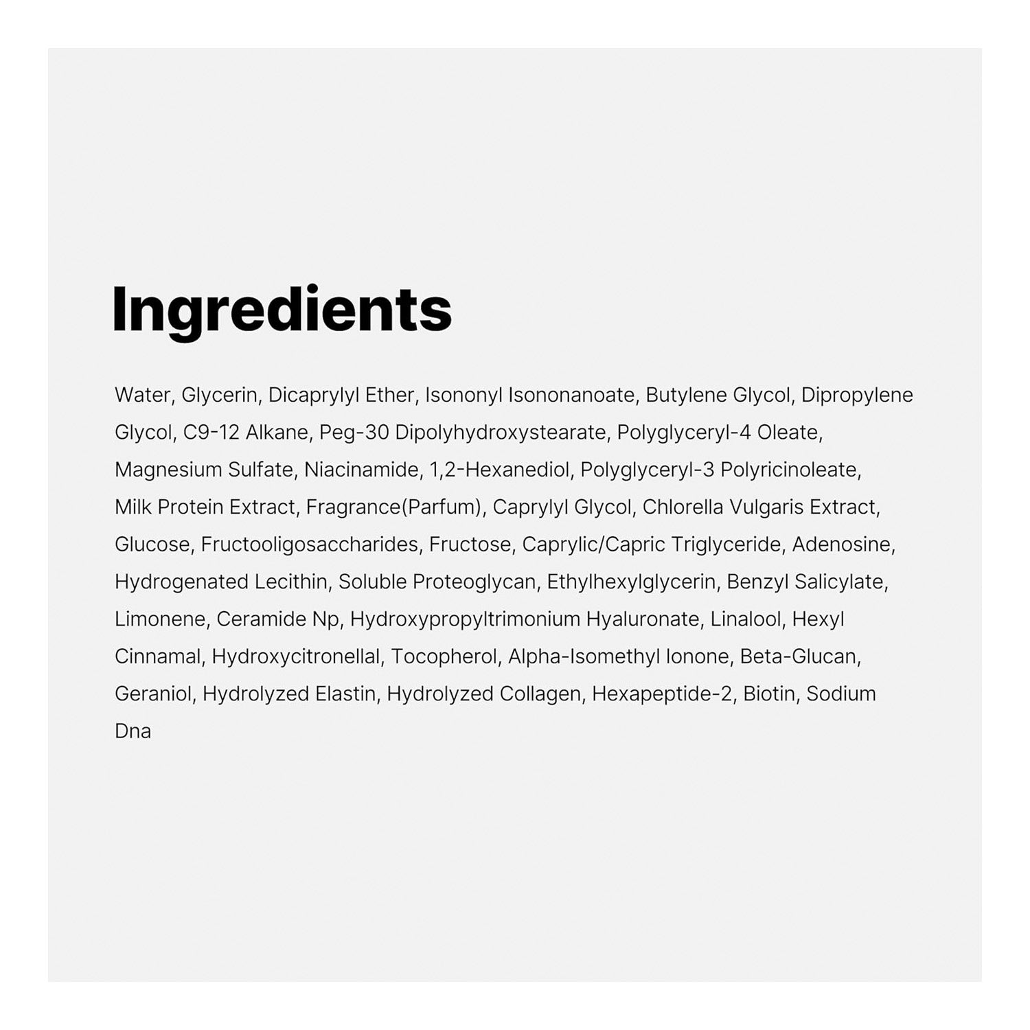 - Hydrating & Firming: Milk Protein Extract and Ceramide NP provide intense hydration and strengthen the skin barrier.