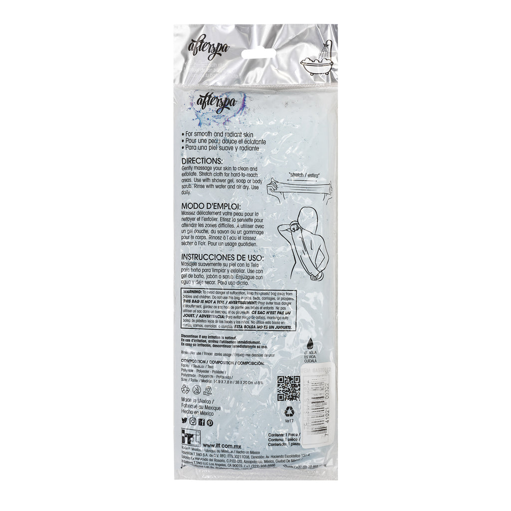 Directions / Care: Apply Cleanser Or Body Wash To Cloth, Place One Handle In Each Hand or Fold Cloth To Ft In One Hand, Scrub Body From Side To Side, Rinse Cloth, Squeeze Out Extra Water. Replace Every 60 Days.