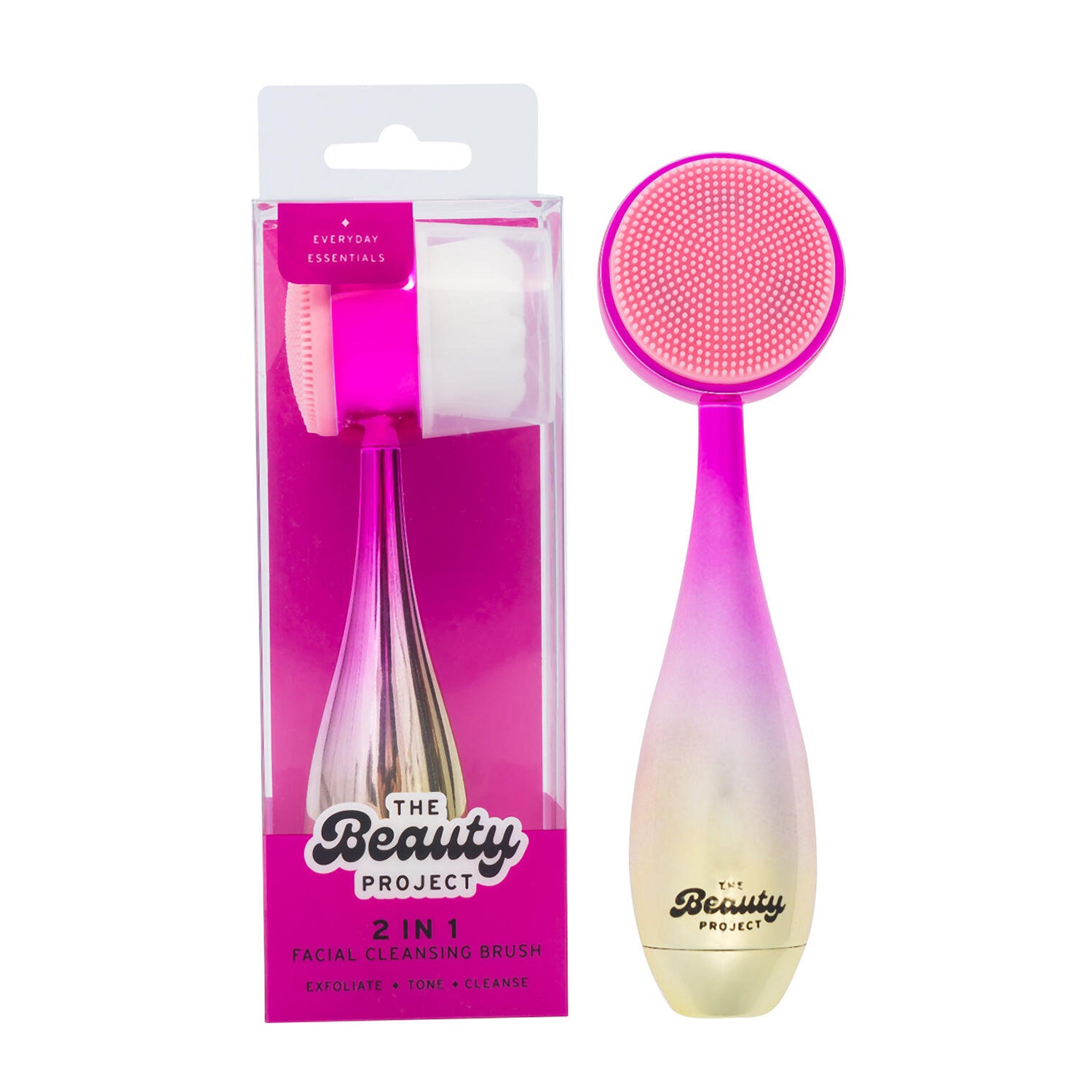 The Beauty Project 2-in-1 Facial Cleansing Brush offers gentle exfoliation and deep cleansing for smoother skin.