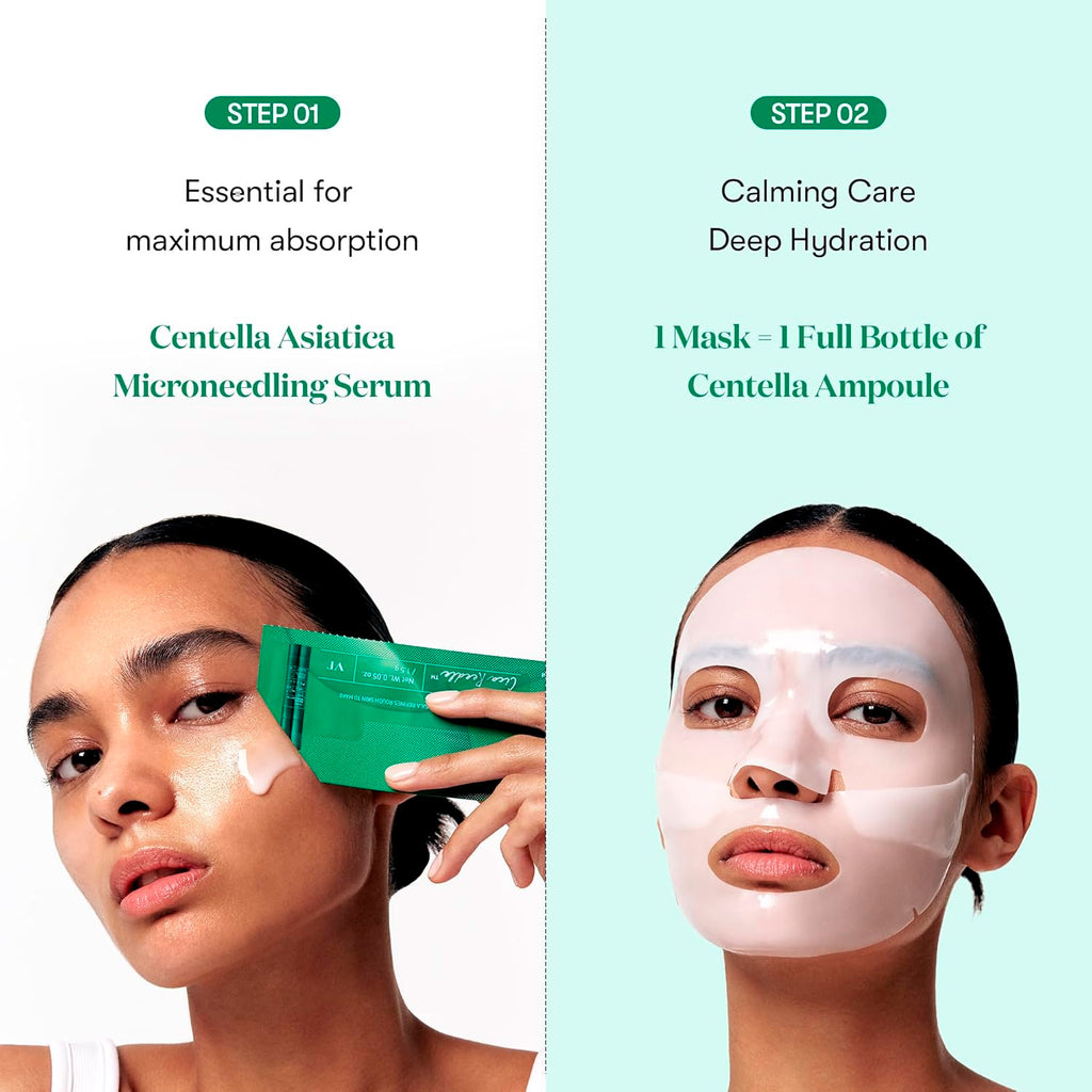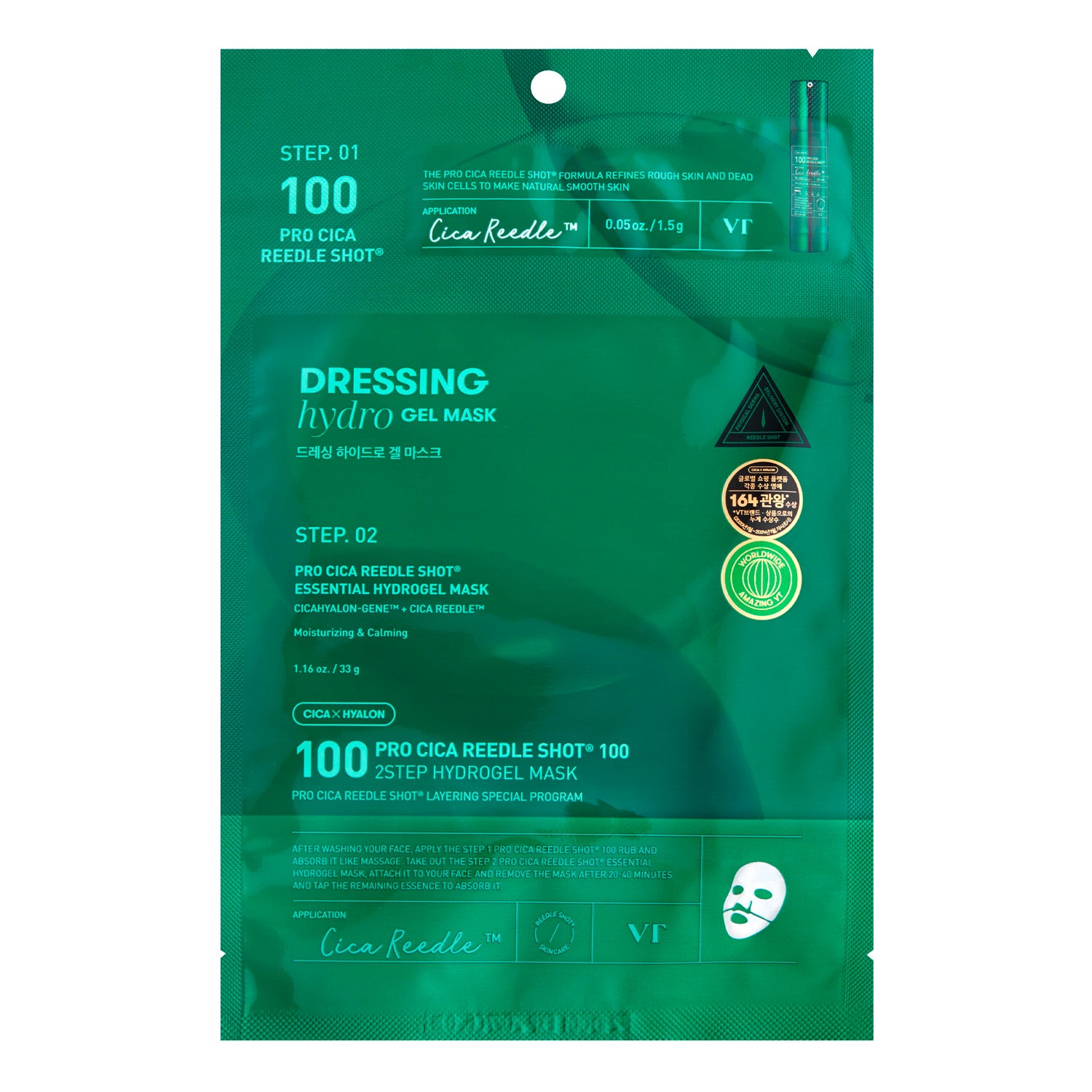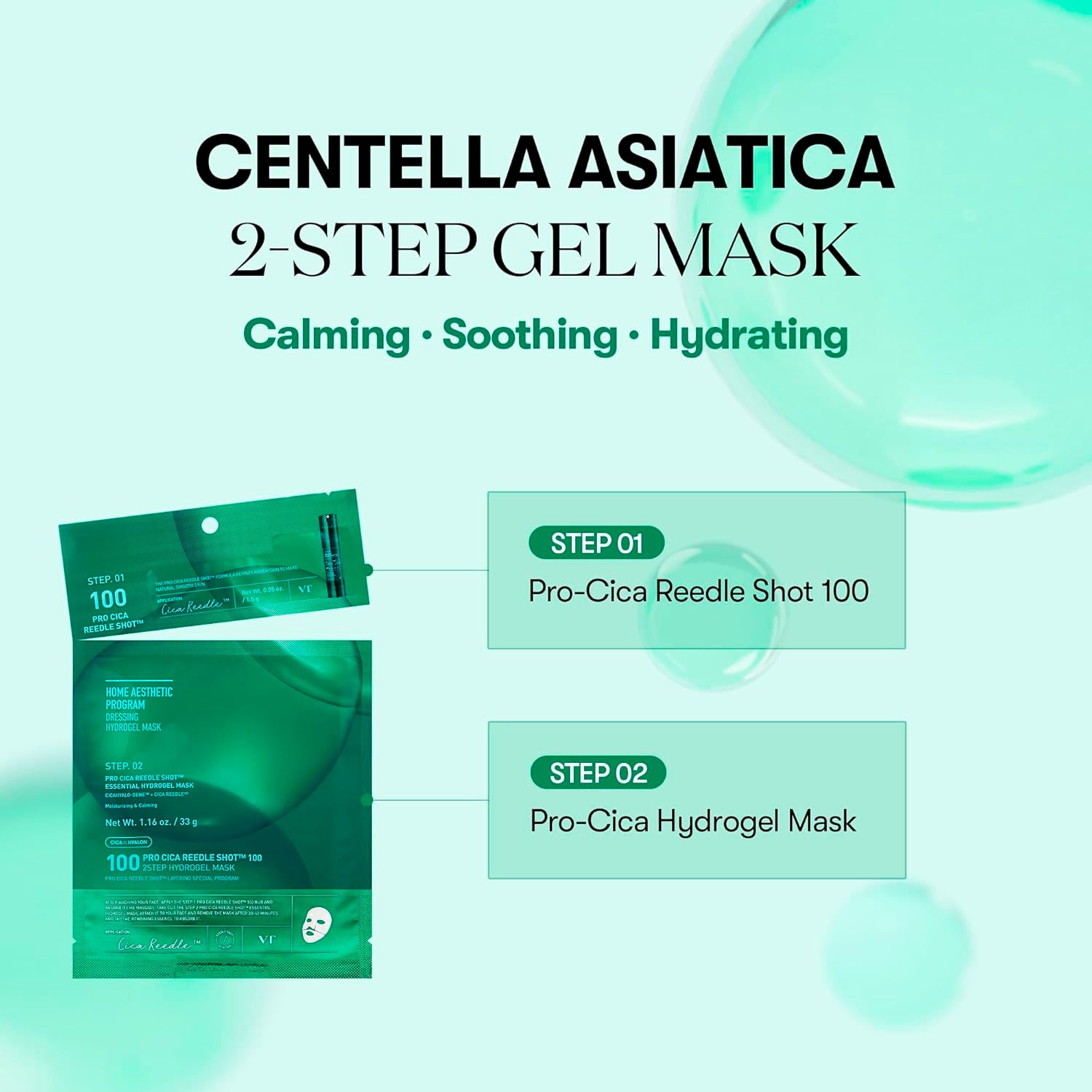 The VT Pro Cica Reedle Shot 100HL 2-Step Hydrogel Mask is a dual-step treatment designed to deliver intensive care for stressed and sensitive skin.