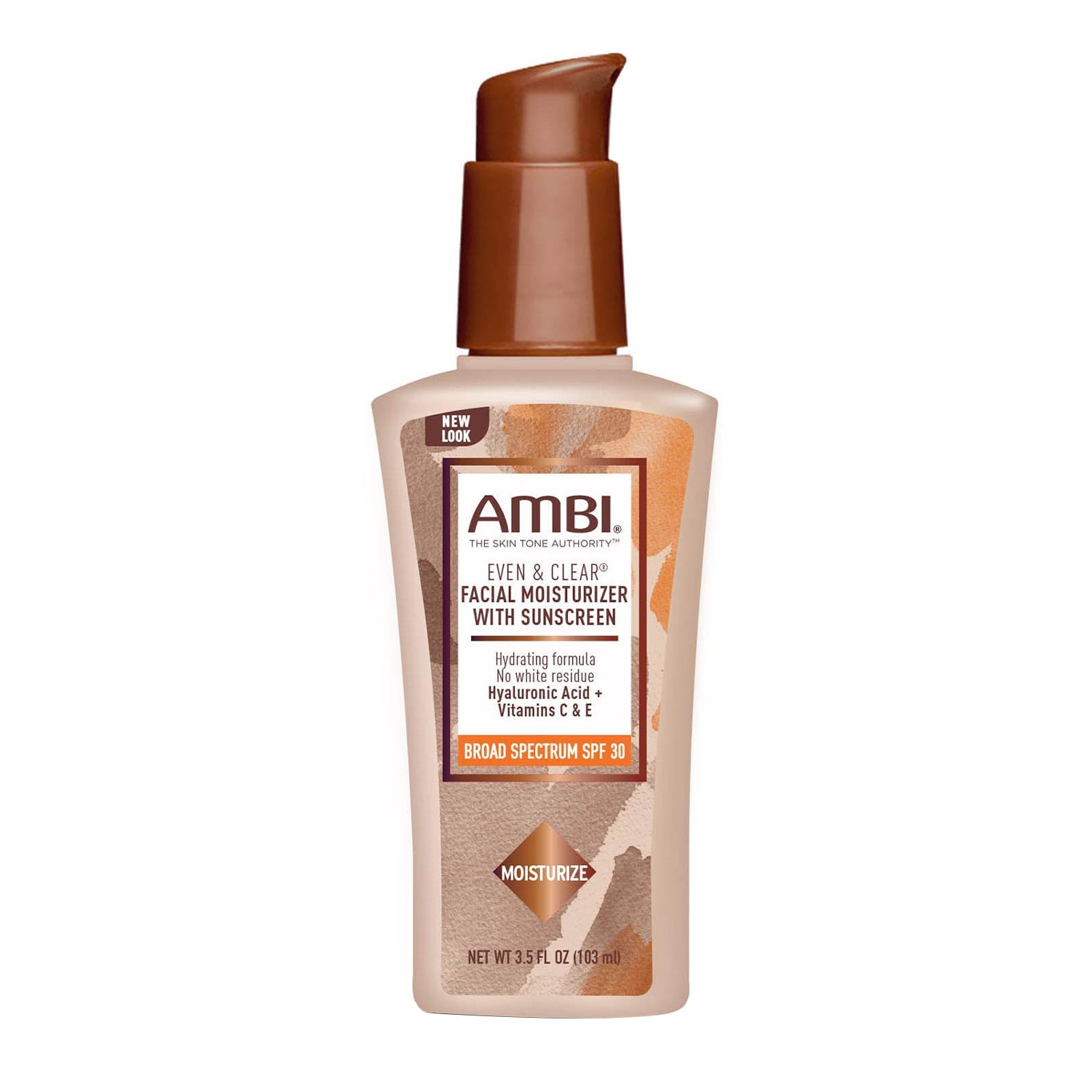 AMBI® Even & Clear® Facial Moisturizer with SPF 30 combines natural extracts, proteins, and vitamins to refine, soften and help even skin tone. It is specifically formulated with Hyaluronic Acid paired with Aloe and Cucumber Extracts, which provide triple the moisture without clogging pores and antioxidant-rich Vitamins C & E, which rejuvenate and add glow to the skin.