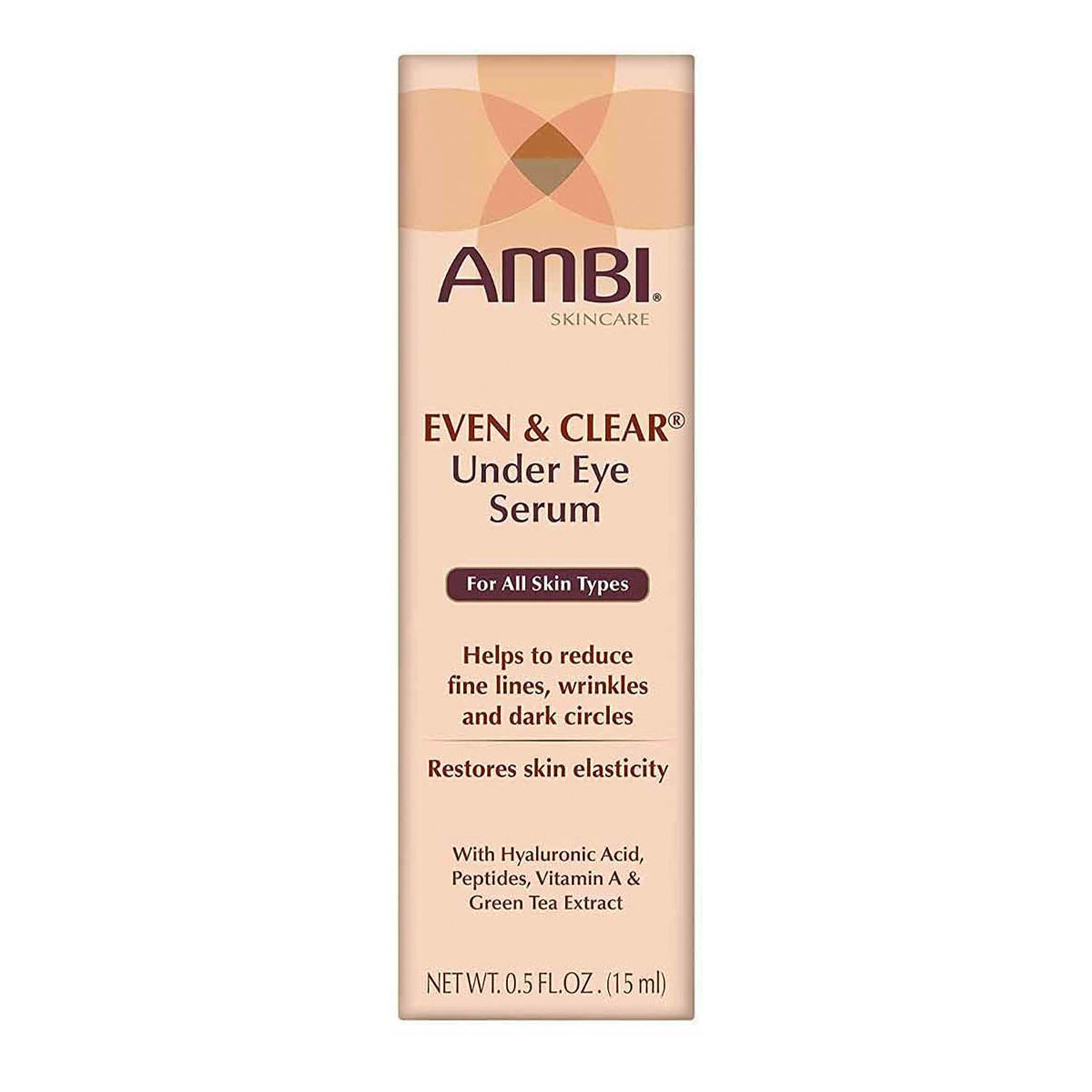 AMBI® Even & Clear® Under Eye Serum works to restore and maintain your youthful look with a proprietary anti-aging formula utilizing Peptides, Hyaluronic Acid, Vitamin A, Green Tea Extract, Licorice Extract, and other natural ingredients.