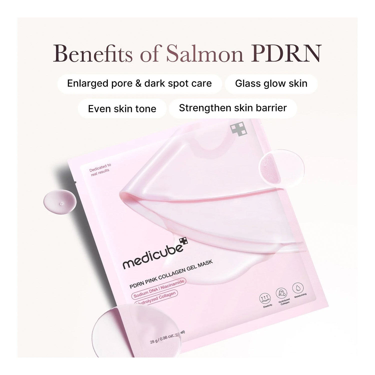The Medicube PDRN Pink Collagen Gel Mask is a premium skincare treatment designed to rejuvenate and hydrate the skin. Infused with Salmon PDRN (Polydeoxyribonucleotides) and low-molecular-weight hydrolyzed collagen, this mask aims to enhance skin elasticity, improve tone, and provide deep hydration. Its unique gel texture transforms from pink to transparent as it absorbs, signaling optimal skin penetration. Ideal for those seeking a radiant, youthful complexion, this mask offers a spa-like experience at home.