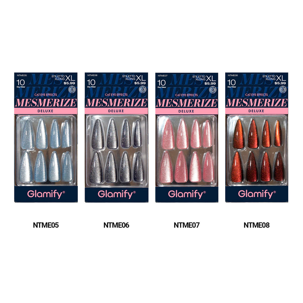 Unlock a captivating, high-impact look with Glamify’s Mesmerize Deluxe Collection, featuring stunning Cat Eye Effects. This collection of press-on nails creates a hypnotic, luminous shine that catches the light with every move. Its easy application and luxurious finish make it perfect for those who love bold, captivating styles. Mesmerize is your ticket to nails that truly shine. Get ready to turn heads and steal the spotlight!