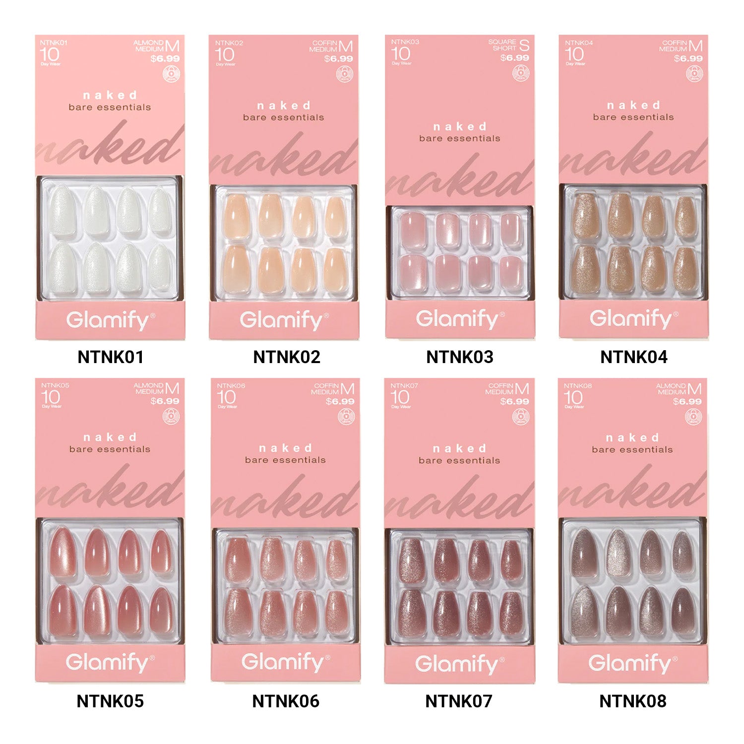 Easy to apply and comfortable to wear, this set provides a flawless fit with multiple nail sizes included. Whether you're looking for a simple refresh or a neutral base for nail art, the Naked Bare Essentials is your go-to for timeless simplicity.