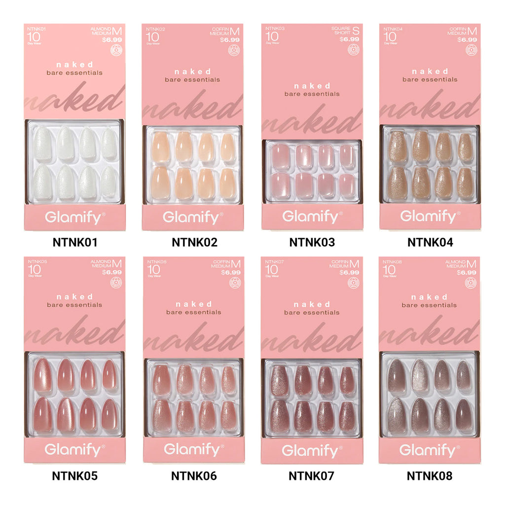 Embrace minimalist beauty with the Glamify Naked Bare Essentials Nail Set. Designed for a clean, natural look, these 24 press-on nails offer effortless elegance that complements any style. With a smooth nude finish and subtle shine, they enhance your hands with a polished, barely-there touch—perfect for everyday wear or understated chic.