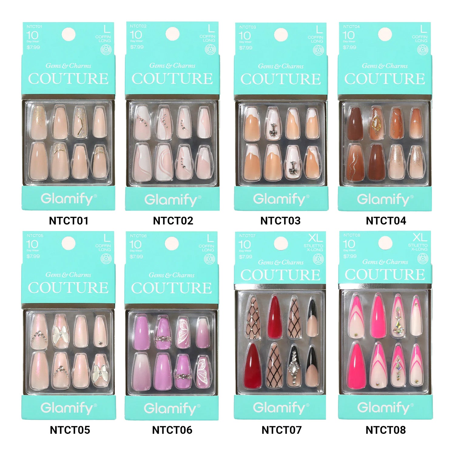 Elevate your manicure game with the Glamify Couture Collection Nail. This premium set includes 24 salon-quality artificial nails, designed to deliver a flawless, professional finish in minutes. Inspired by high-fashion aesthetics, each nail features luxurious details, from chic patterns to sophisticated color palettes, making it perfect for any occasion β whether it's a night out or a polished everyday look. Easy to apply and comfortable to wear, these nails bring instant glam right to your fingertips.