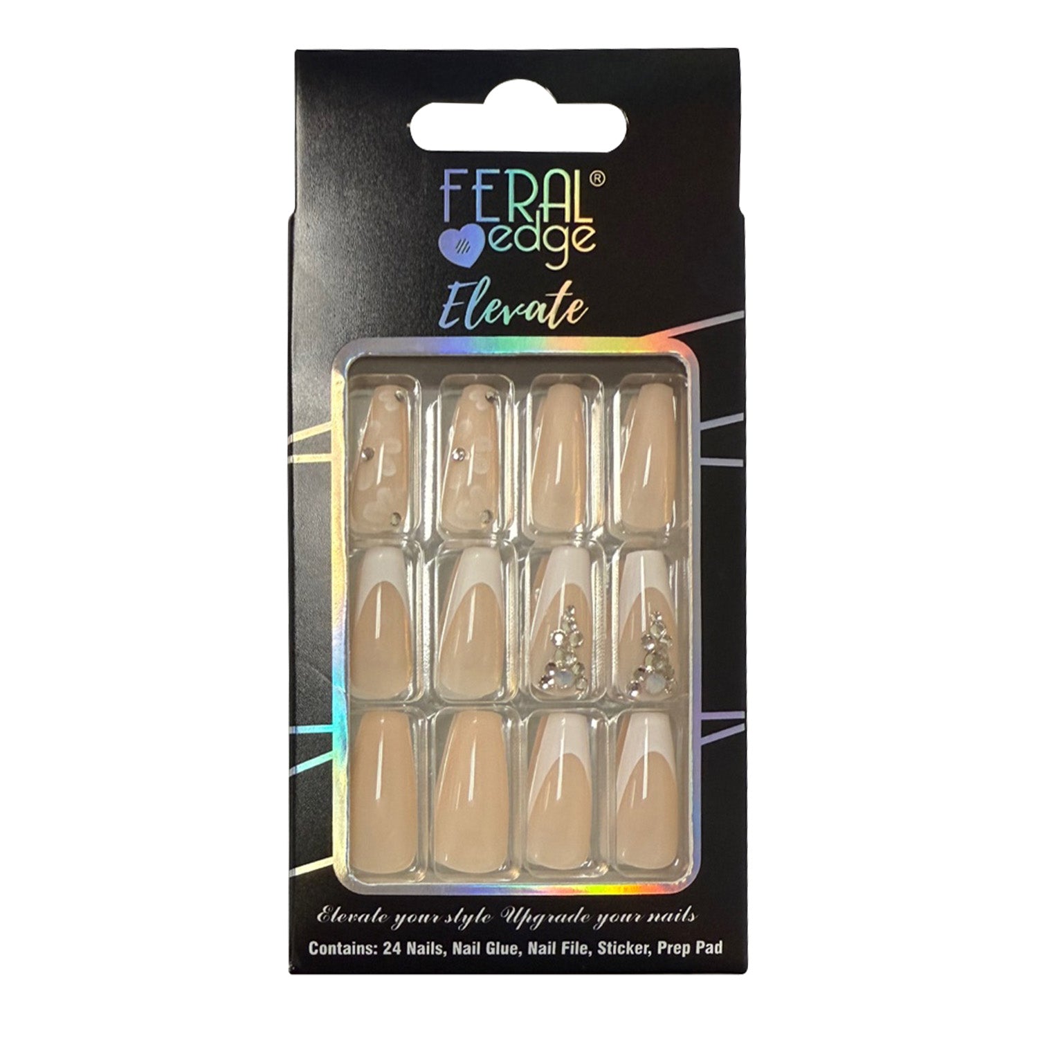 CONTAINS 24 NAILS + NAIL GLUE + NAIL FILE + PREP PAD + MANICURE STICK