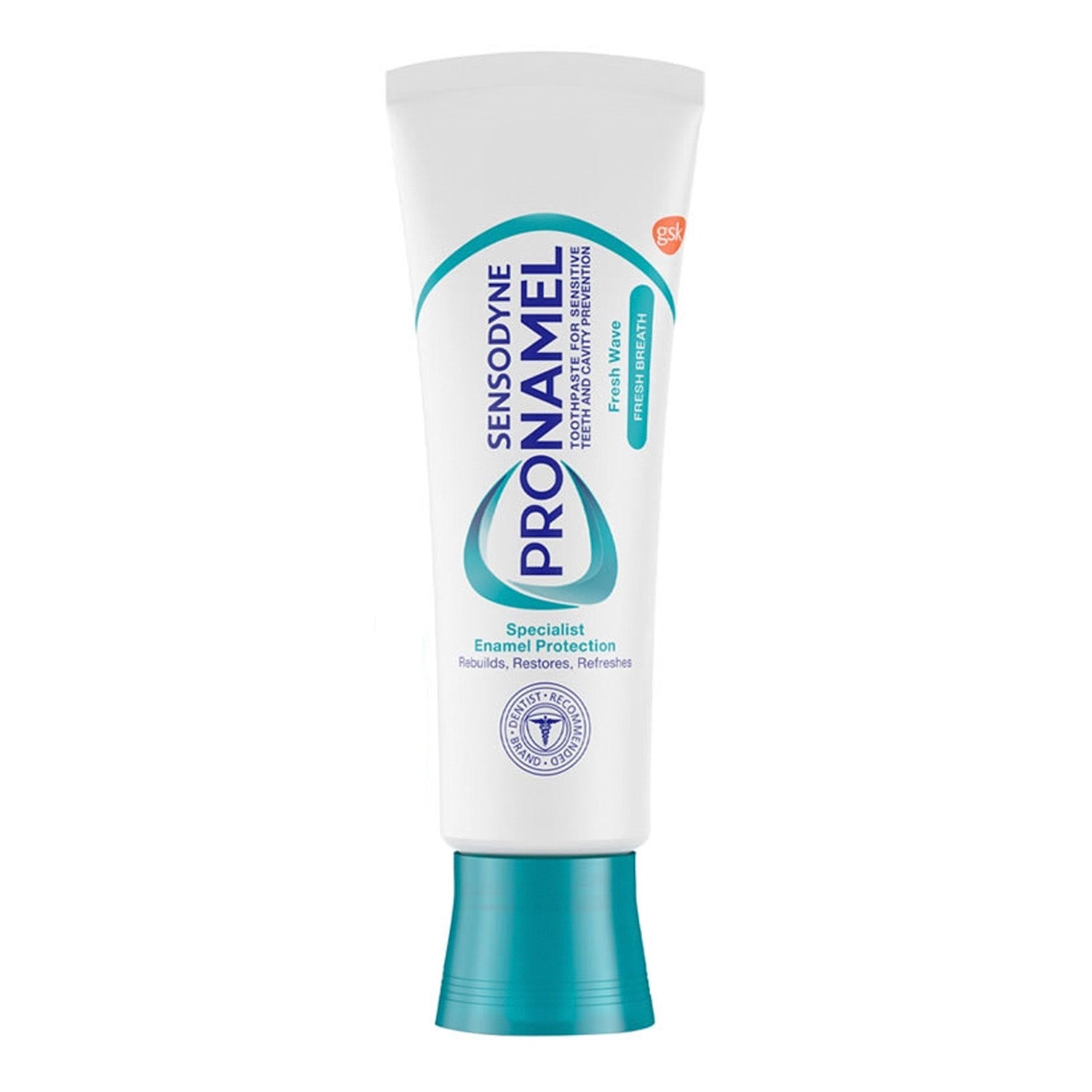 Sensodyne Pronamel Specialist Enamel Protection Toothpaste Fresh Wave is a specially formulated toothpaste designed to protect and strengthen tooth enamel, especially for individuals with sensitive teeth. Its unique formula helps to re-harden acid-weakened enamel and protect against the effects of acid erosion from acidic foods and drinks. With regular use, it provides cavity protection, reduces tooth sensitivity, and leaves your mouth feeling clean and fresh with a pleasant minty flavor.