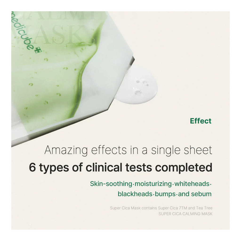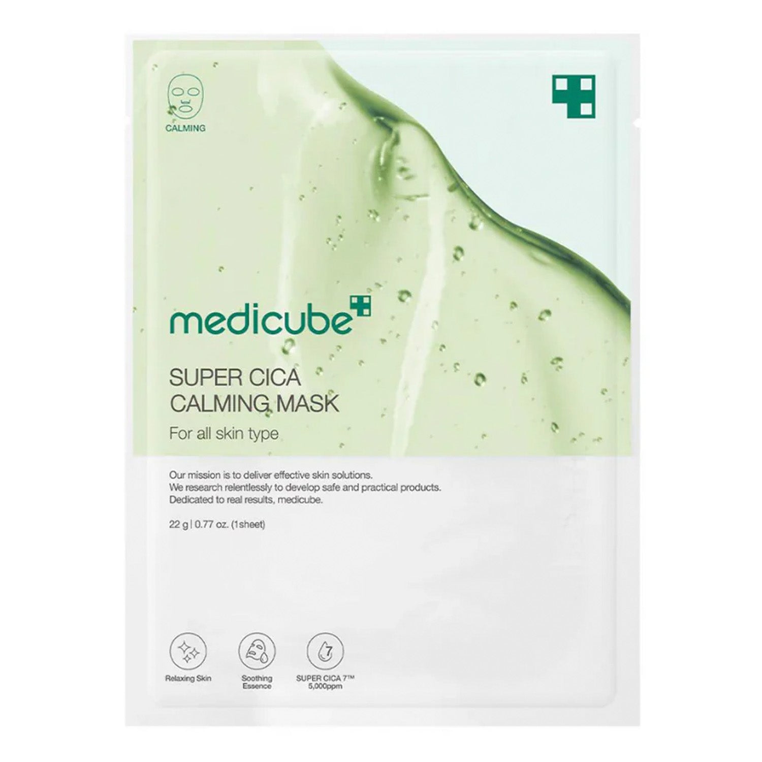 The Medicube Super Cica Calming Mask is a single-use sheet mask infused with a potent blend of centella asiatica (cica) and other skin-soothing ingredients. Designed to calm irritated and sensitive skin, it helps reduce redness, inflammation, and discomfort after daily stressors like sun exposure or environmental aggressors. The mask features a soft, breathable cotton fiber that adheres snugly to the skin, ensuring optimal absorption and delivering an instant cooling sensation. After 15–20 minutes, your skin feels refreshed, hydrated, and balanced with a strengthened skin barrier.