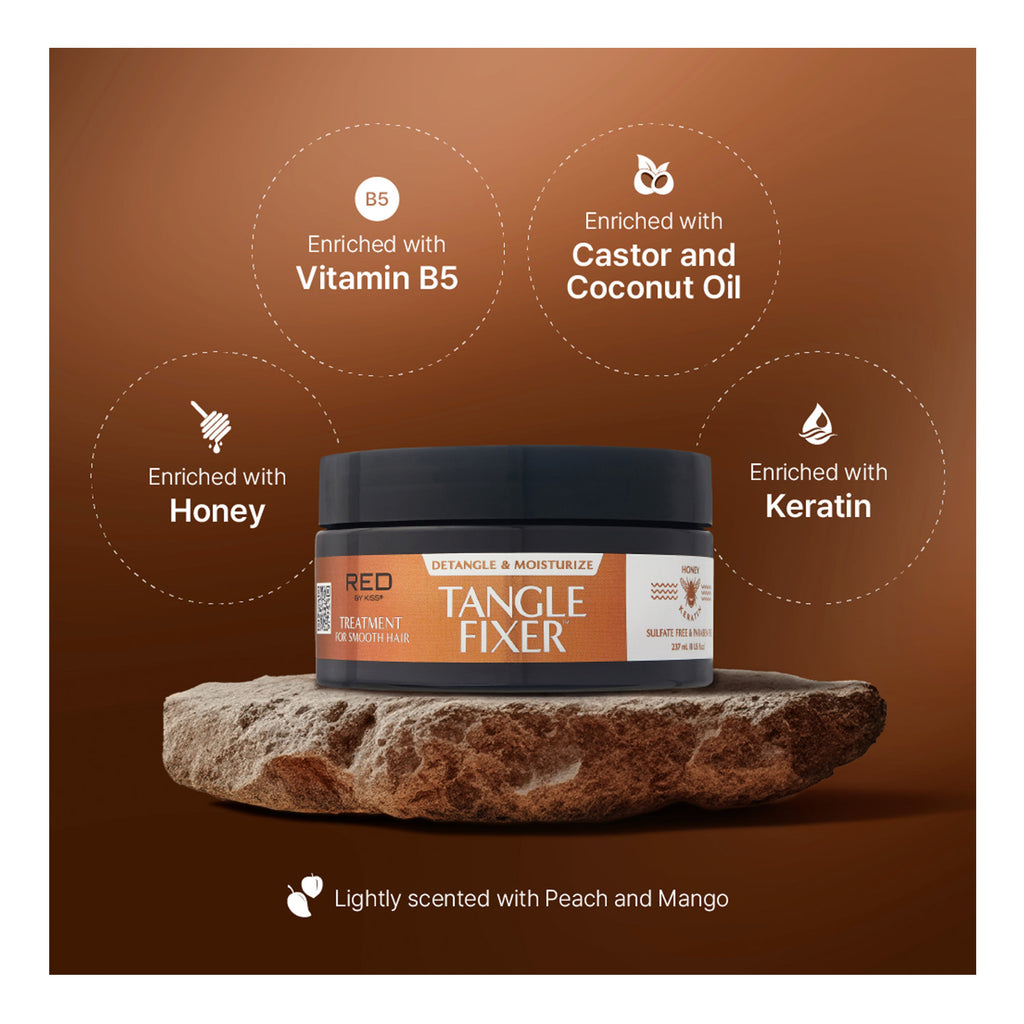 Red by Kiss Tangle Fixer Detangle & Moisturize Treatment 8oz/237ml is a deep-conditioning treatment designed to provide intense moisture while effortlessly detangling the hair. This powerful formula helps to restore hydration, leaving hair soft, smooth, and manageable. It works to reduce frizz and prevent breakage by nourishing each strand from root to tip. Perfect for all hair types, this treatment strengthens and protects hair, making it more resilient to daily styling. Ideal for use on dry or tangled hair, it ensures a silky, tangle-free finish with a healthy shine. Use regularly to maintain optimal moisture balance and enhance the overall health and appearance of your hair.