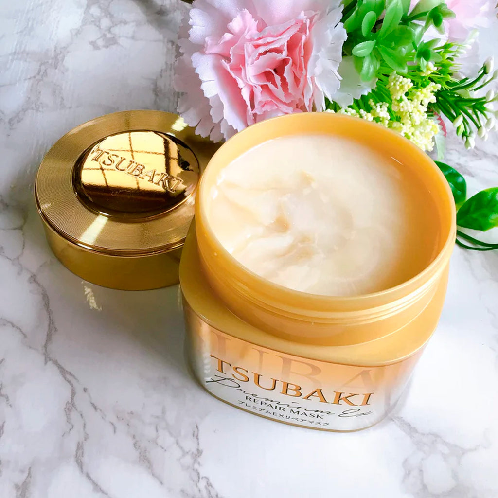 Tsubaki Premium Repair Mask deeply nourishes and smooths your hair by repairing damaged cuticles and locking in moisture.